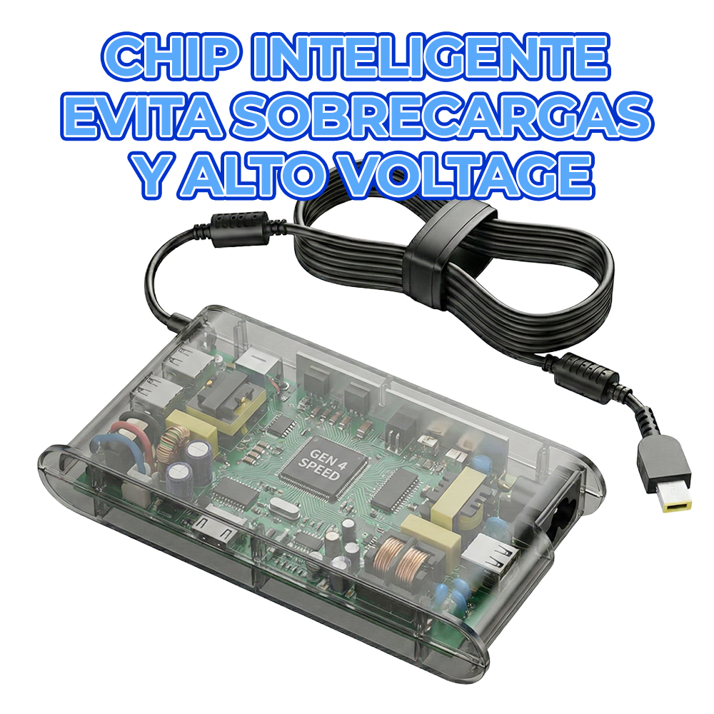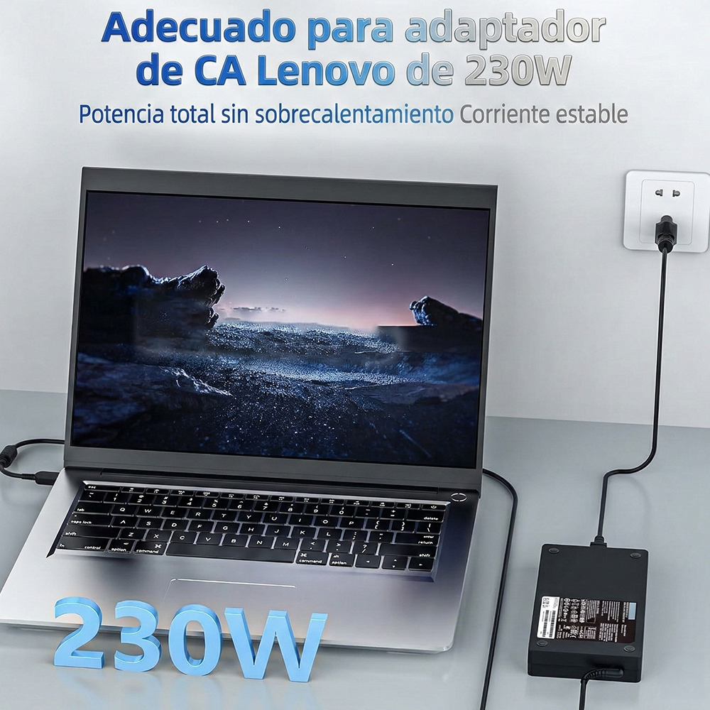 Adaptador de corriente de alto rendimiento compatible con laptops Lenovo que requieren 230W y conector cuadrado amarillo (Slim Tip). Ideal como reemplazo o cargador principal para estaciones de trabajo y equipos gaming.