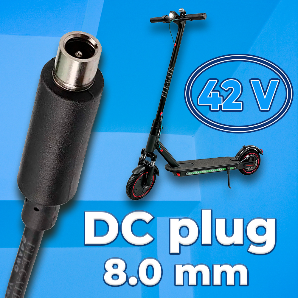 - Conector: Viene con un enchufe macho de 8.0 mm, que es común en muchos dispositivos eléctricos y scooters. Antes de comprar, asegúrate de que el conector sea compatible con tu dispositivo específico.