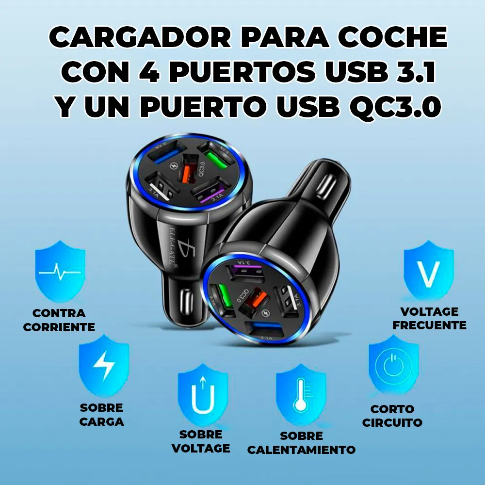 1 USB para coche cargador para carga rápida