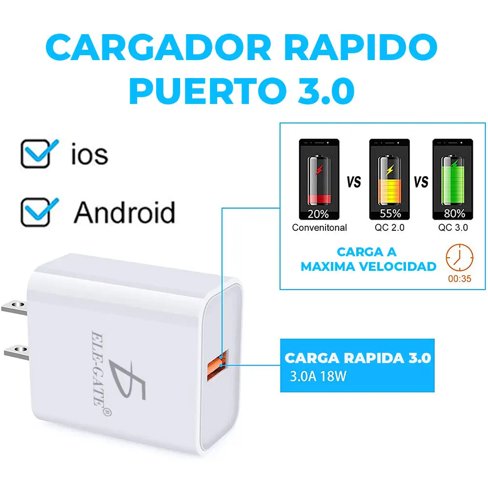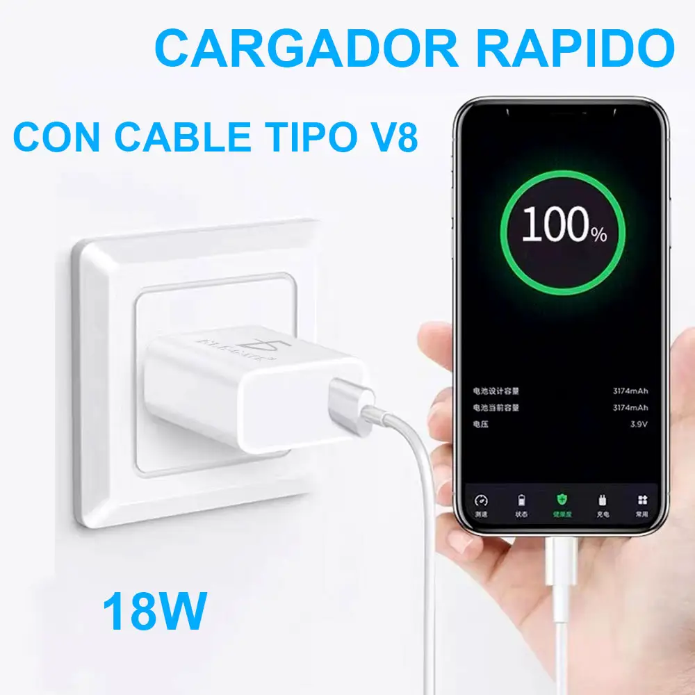 Cargador Rápido para Celular Android 5V 2A Con Cable de Micro V8