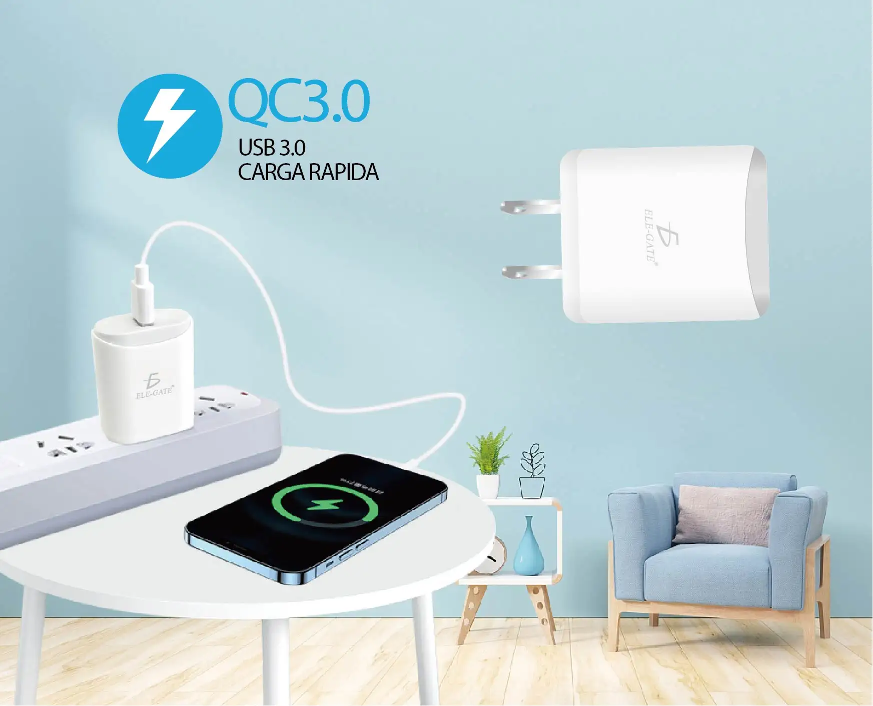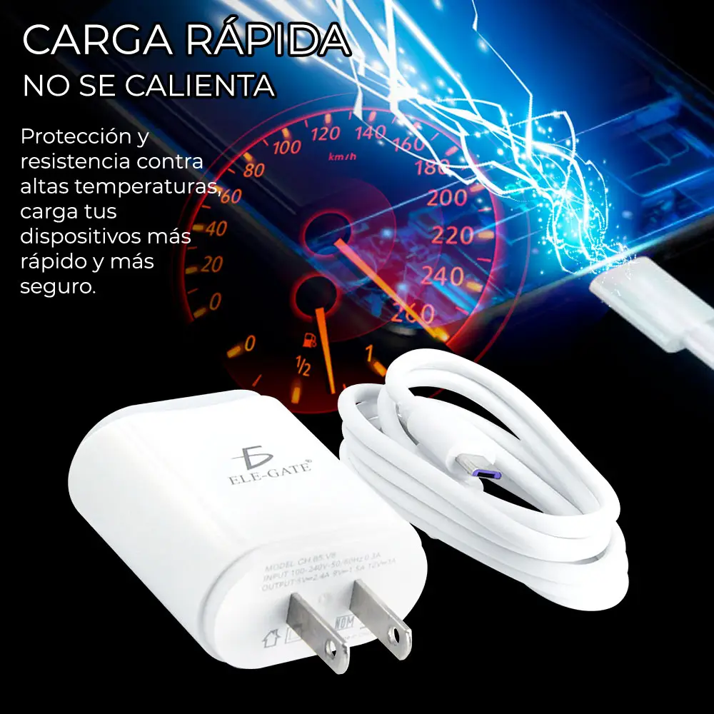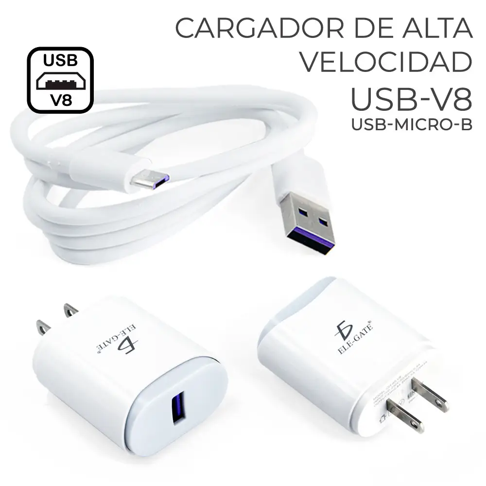 Cargador Rapido QC 3.0 USB 5V 2.4A Con Cable Micro V8