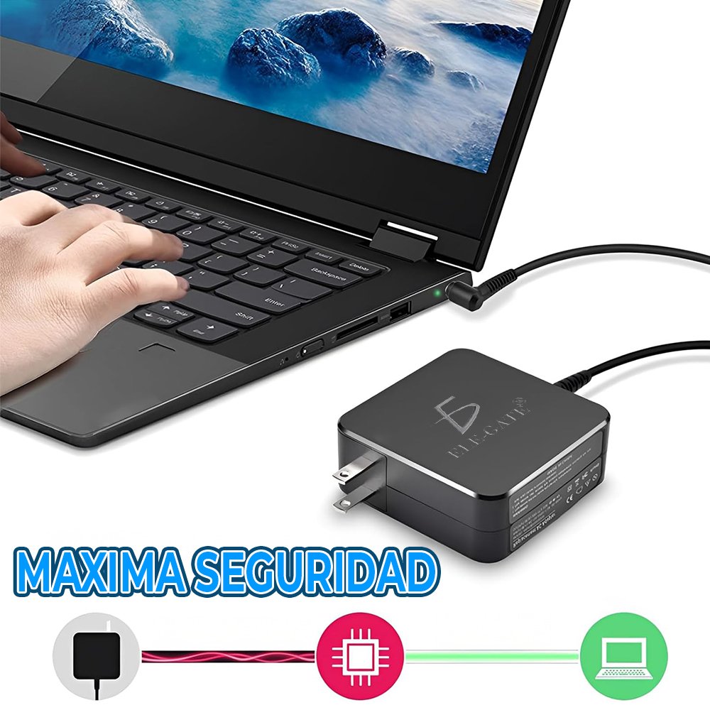 Potencia precisa y segura: salida 19V 2.37A (45W) para laptops ASUS compatibles, con chip inteligente que protege contra sobrecarga, sobretensión y cortocircuito.