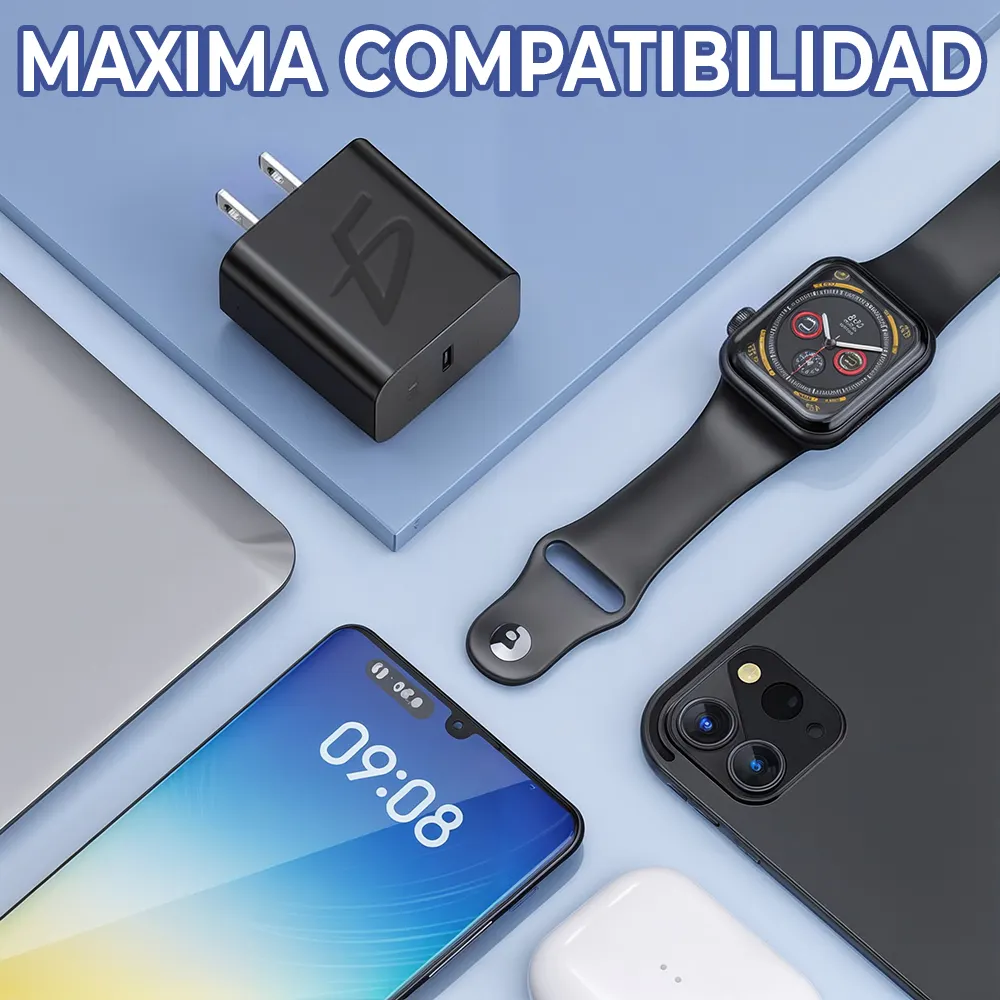 - Protección inteligente: El chip integrado evita sobrecalentamientos y descargas, protegiendo tus gadgets.