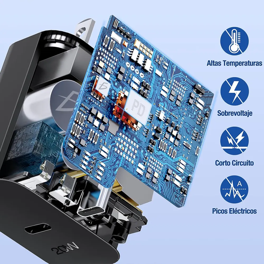 Con el Cargador Tipo C de 20 W con Carga Rápida, no solo obtienes un rendimiento eficiente, sino también la seguridad y protección necesarias para tus dispositivos electrónicos. Eleva tu experiencia de carga con este dispositivo inteligente y confiable.