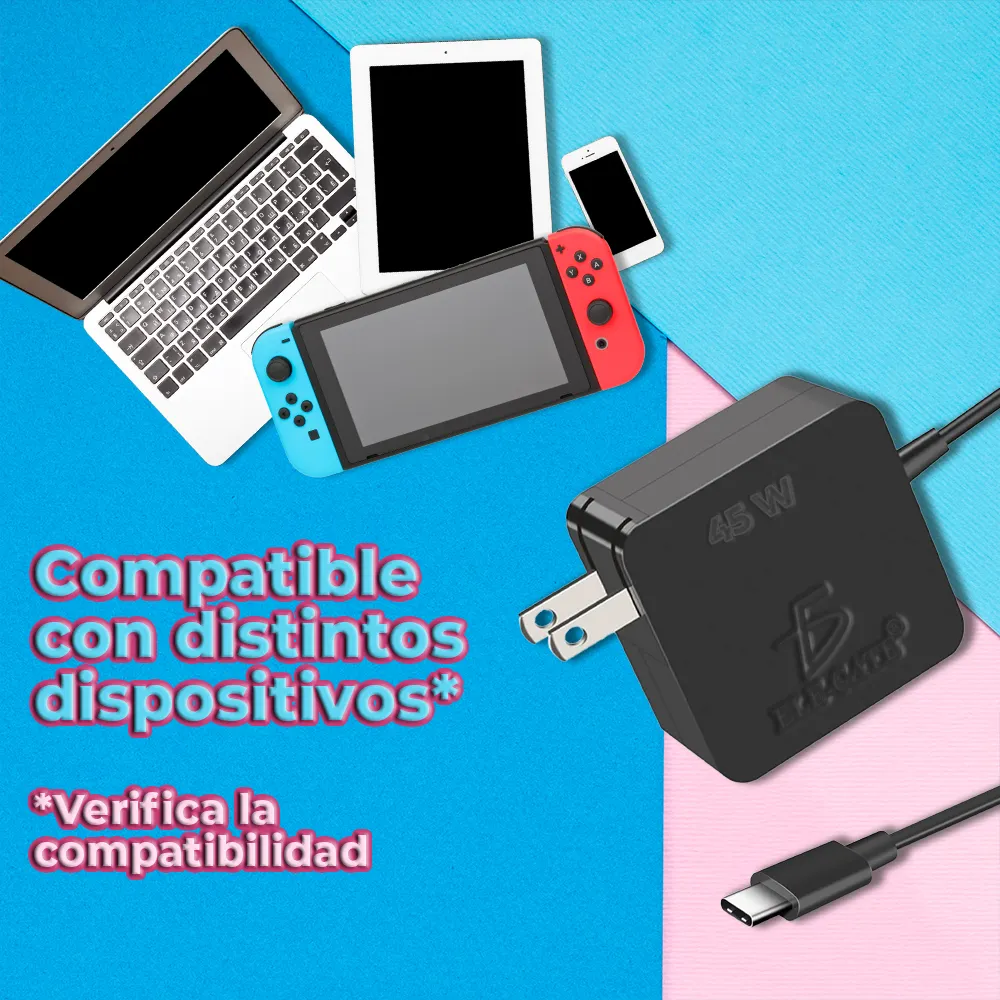 Carga tu dispositivo con comodidad y eficiencia con nuestro Cargador Universal de 45 W tipo C Cuadrado. Diseñado para brindar versatilidad y rendimiento, este cargador es compatible con una amplia gama de dispositivos. Ya sea en casa, en la oficina o mientras viajas, nuestro cargador te ofrece la potencia necesaria para mantener tus dispositivos funcionando sin problemas. ¡Haz que la carga sea una tarea simple y conveniente con nuestro cargador universal