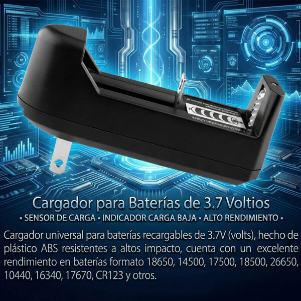 Compatible con baterías AAA , AA y 3.7V, el cargador se adapta a cualquier medida de pila, no tienes que preocuparte por comprar un cargador para cada pila, su increíble diseño se ajusta a la pila que necesitas cargar.