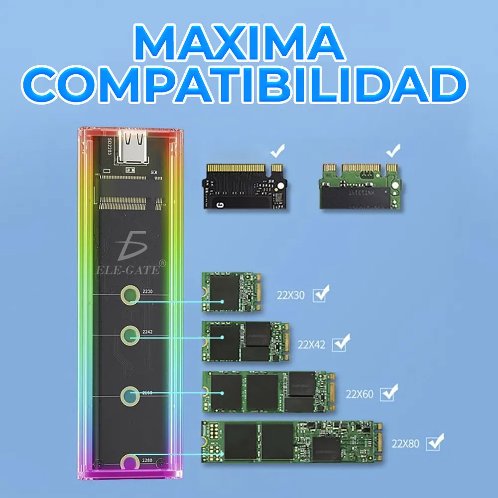 Case Transparente con Luz RGB: Estilo y Elegancia para tu PC Gaming – Conexión de Alta Velocidad de 10 Gbps y Compatibilidad M.2 NVMe