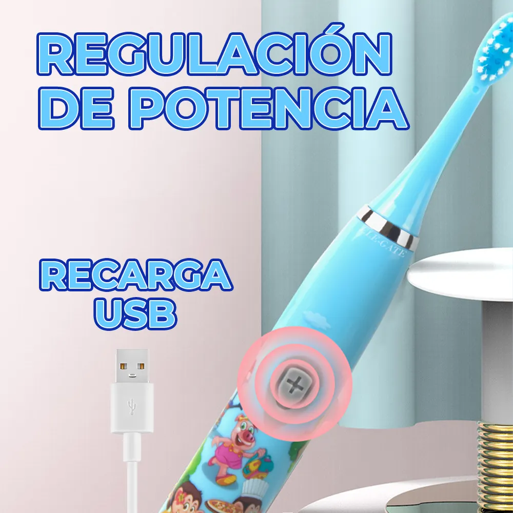 Cepillo Eléctrico para Niños y Niñas con Pila Recargable via USB: la mejor opción para una limpieza dental eficaz, segura y divertida. Con vibración de máxima limpieza, rodea cada diente para eliminar la placa de manera superior. Su diseño resistente al agua y su fácil encendido con un solo botón lo hacen perfecto para el uso infantil. Garantiza el tiempo de cepillado recomendado por dentistas, promoviendo una higiene bucal impecable desde temprana edad. ¡Haz que el cepillado sea una experiencia sencilla y efectiva para los más pequeños!