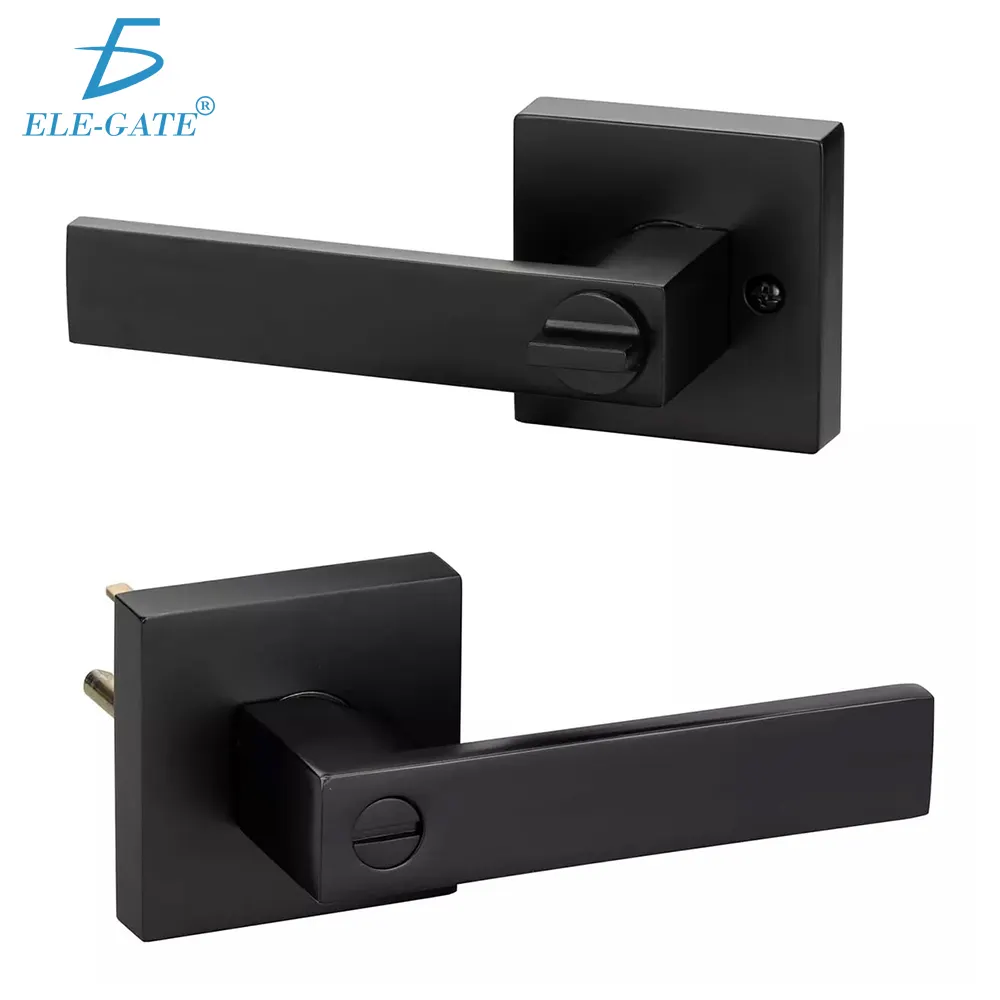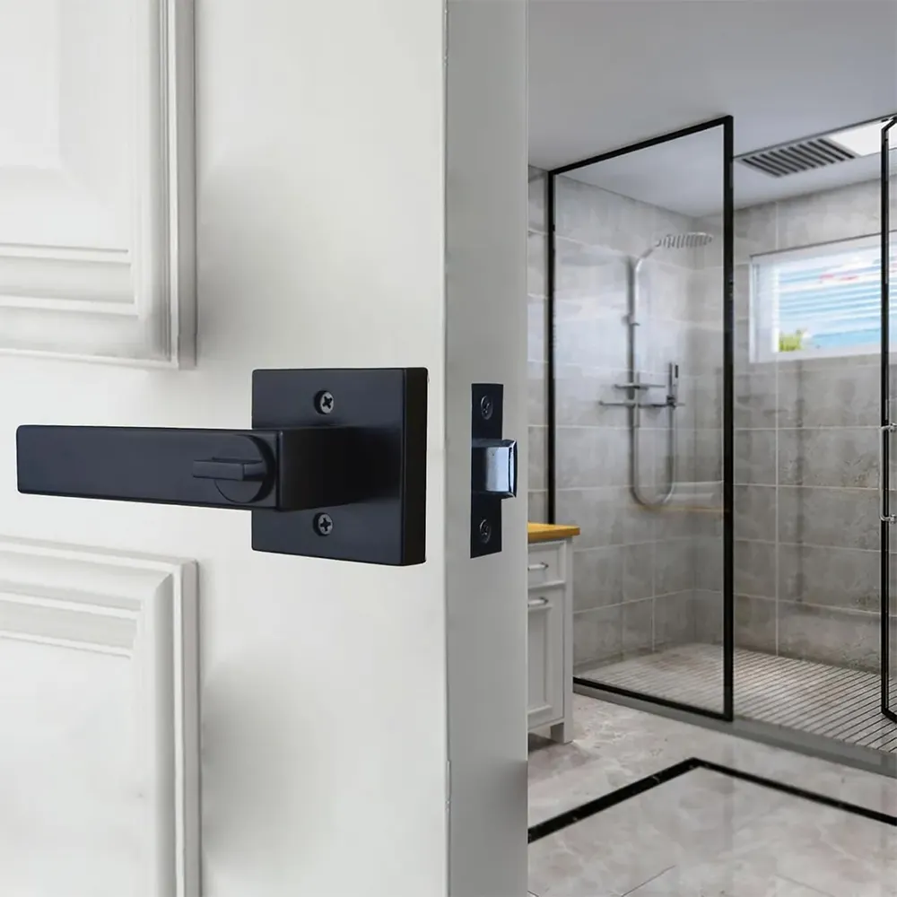 Cerradura de manija cuadrada Negra moderna con sistema de bloqueo de privacidad , ideal para puertas de bañó. Su diseño elegante se adapta a estilos contemporáneos y garantiza seguridad y comodidad. Fabricada con materiales duraderos, fácil de instalar en puertas de madera o metal.