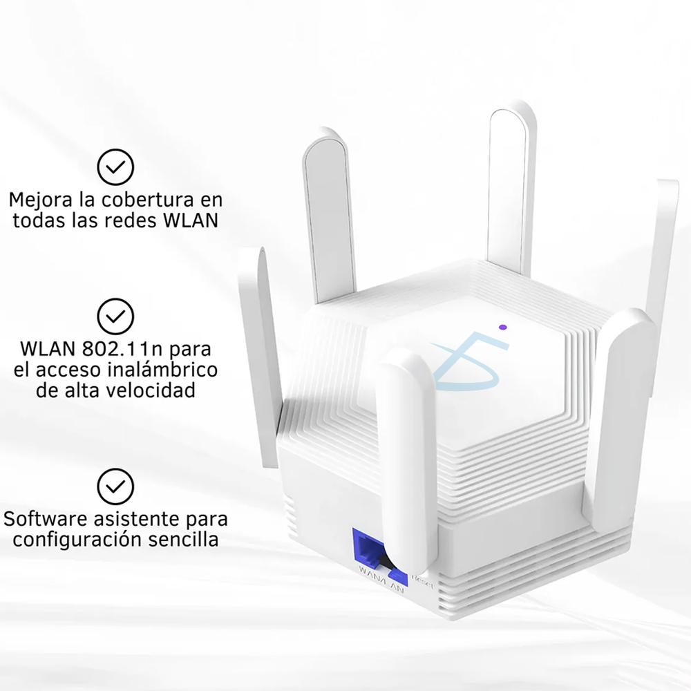Potencia tu señal WiFi y olvídate de las zonas sin cobertura en casa u oficina. Este repetidor/extensor amplificador está diseñado para ofrecer una conexión estable, amplia y sencilla de configurar, ideal para streaming, videollamadas, juegos en línea y navegación diaria.