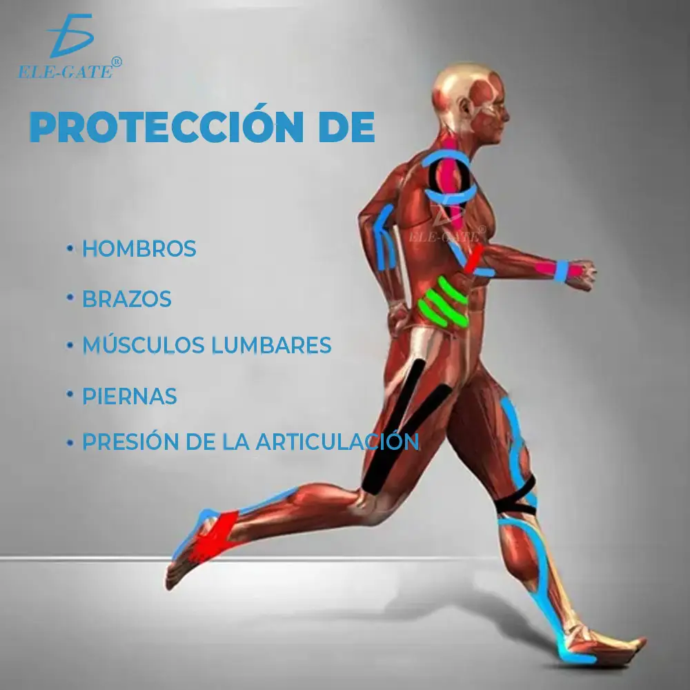 creado para soportar lesiones deportivas comunes y condiciones de la espalda, hombro, rodilla, codo, y más. Diseñado para aplicar sobre y alrededor de las áreas lesionadas para apoyar los músculos y las articulaciones durante la recuperación. Esta cinta deportiva de kinesiología puede brindar protección por hasta 5 días y puede permanecer en su lugar incluso cuando está húmedo por el sudor después del entrenamiento.