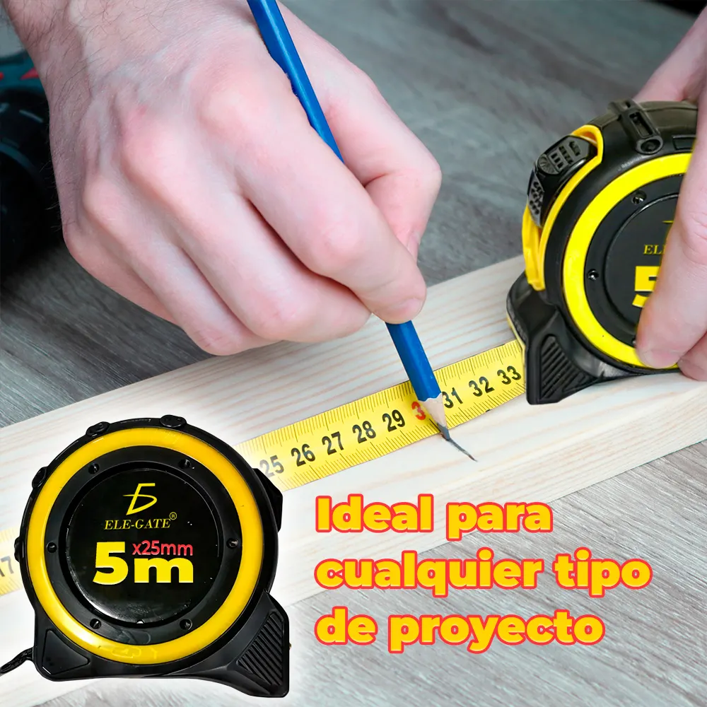 - Longitud de 5 Metros: Ideal para una amplia gama de aplicaciones, desde carpintería hasta proyectos de construcción.