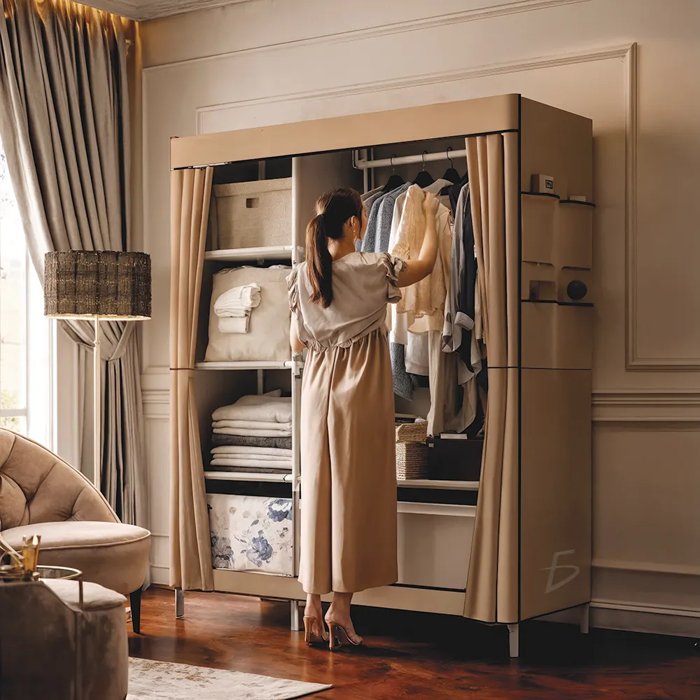 Organiza tu ropa de forma práctica y elegante con el Clóset Montable de 4 Niveles con Perchero, ideal para mantener tus prendas limpias, ordenadas y siempre a la mano. Su diseño inteligente incluye cuatro niveles de almacenamiento y un perchero superior, perfecto para colgar vestidos, camisas o abrigos.