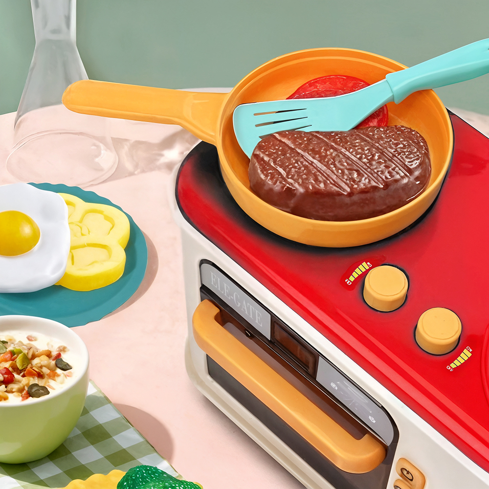 Gracias a sus efectos de luz, sonido y movimiento, los niños pueden girar perillas, escuchar el chispeo de la sartén, ver el plato girar en el microondas y disfrutar de una experiencia sensorial completa. Además, el efecto de cambio de color UV añade un toque mágico y educativo al juego.