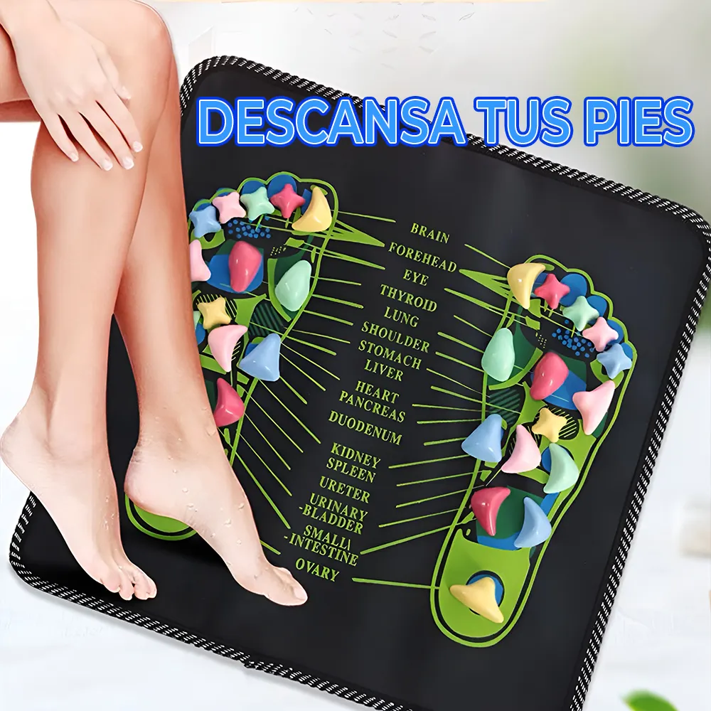 Colchoneta de Masaje Acupresión y Reflexología de Pies, diseñada para relajar profundamente todas las partes del cuerpo. Equipada con piedras sintéticas redondeadas que estimulan los puntos de presión clave, ayuda a aliviar el estrés, mejorar la circulación y liberar tensiones acumuladas. Ideal para uso diario en casa u oficina.