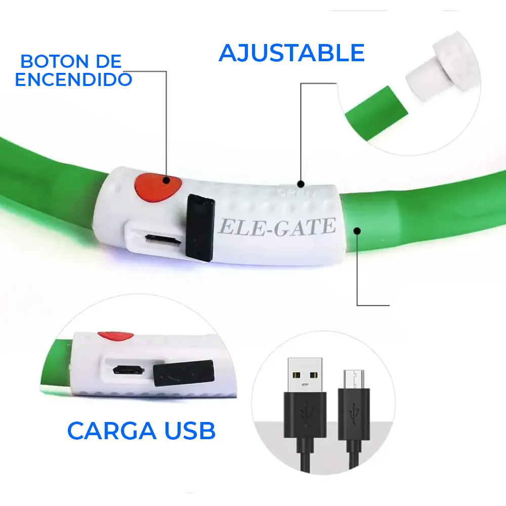 Collar de perro con luz LED, Recargable USB Corte Ajustable a Tamaño Ultra Brillante.