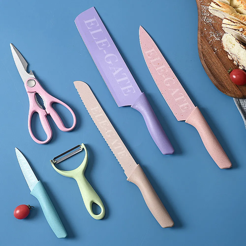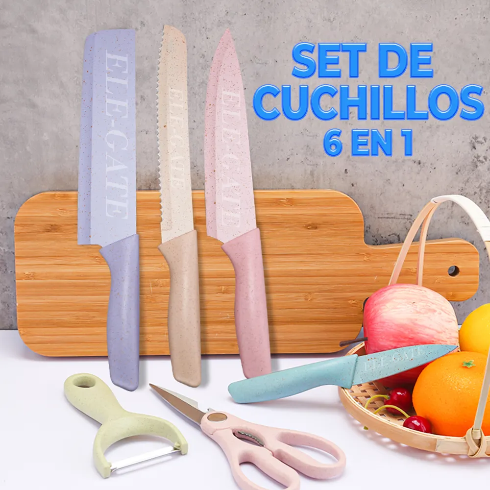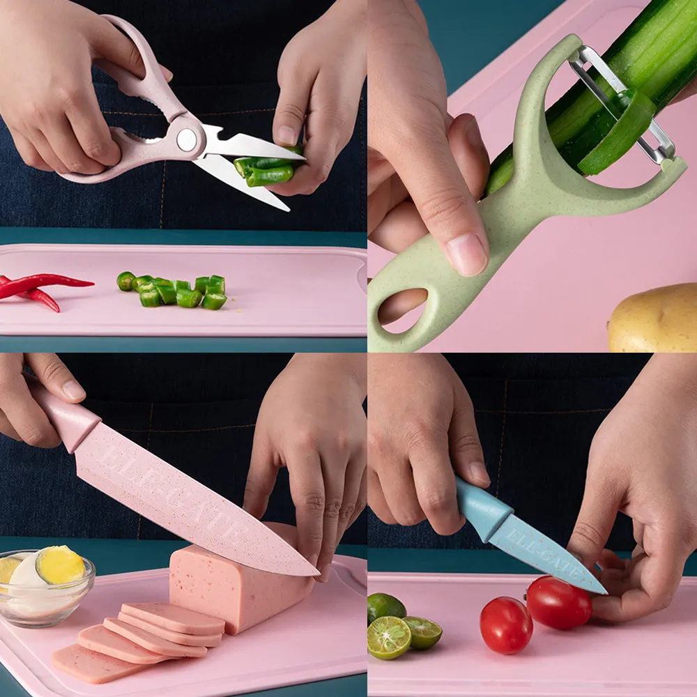 - 【Hoja Afilada y Material Saludable Cada hoja de los coloridos cuchillos de cocina está hecha de acero inoxidable con alto contenido de carbono, lo que la hace afilada, resistente y duradera durante un largo período. El revestimiento de paja de trigo antiadherente es apto para uso alimentario y antioxidante, lo que ayuda a aumentar la resistencia al desgaste de la superficie de la cuchilla y aumenta la eficiencia de corte.