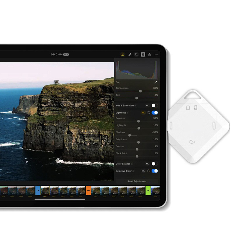 Combina en un solo dispositivo conectores USB, USB-C (Tipo C) y Lightning, además de ranuras para tarjetas SD y Micro SD, para que puedas usarlo con smartphones, tablets y computadoras sin adaptadores adicionales. -
