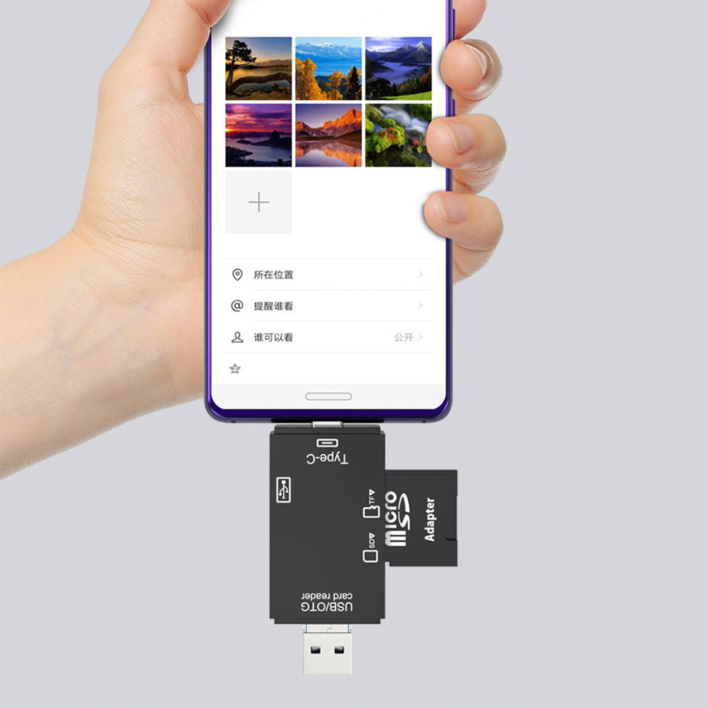 Conecta el lector a un teléfono Android compatible con OTG para leer tarjetas SD/TF de forma inmediata y gestionar archivos directamente desde el móvil. -