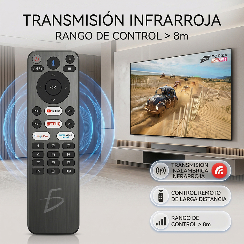 Disfruta de una experiencia más cómoda y moderna con este control remoto para Google TV con función de voz, diseñado como reemplazo perfecto para televisores inteligentes Android.