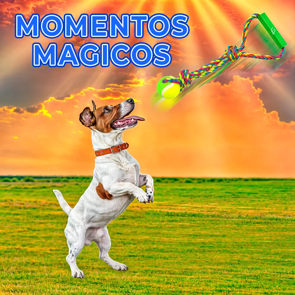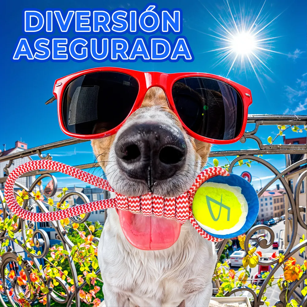 Este Set proporcionar a tu mascota una experiencia de juego estimulante y satisfactoria que promueva su actividad física, estimule su mente y satisfaga su instinto natural de masticación. La combinación de la cuerda resistente y la pelota de tenis ofrece múltiples formas de juego, incluyendo juegos de tirar, lanzar y masticar, lo que ayuda a fortalecer el vínculo entre el perro y su dueño. Además, estos juguetes pueden ayudar a mantener la salud dental de los perros al proporcionar una superficie texturizada para masticar y limpiar los dientes. En resumen, la meta principal es proporcionar diversión, ejercicio y beneficios para la salud para los perros, mientras fomentan la interacción y el juego entre el perro y su propietario.