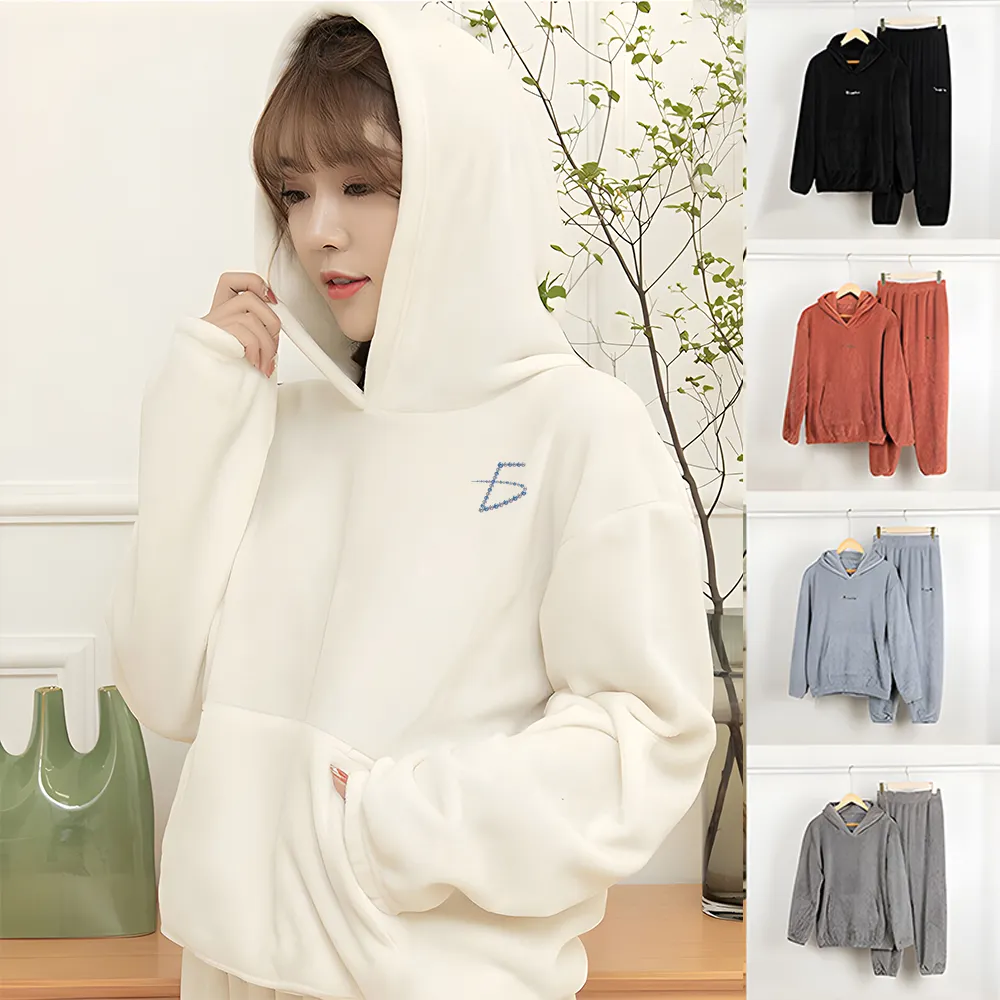 “Conjunto de pijama de felpa sherpa con sudadera y capucha: Acolchado y suave para un descanso pleno”