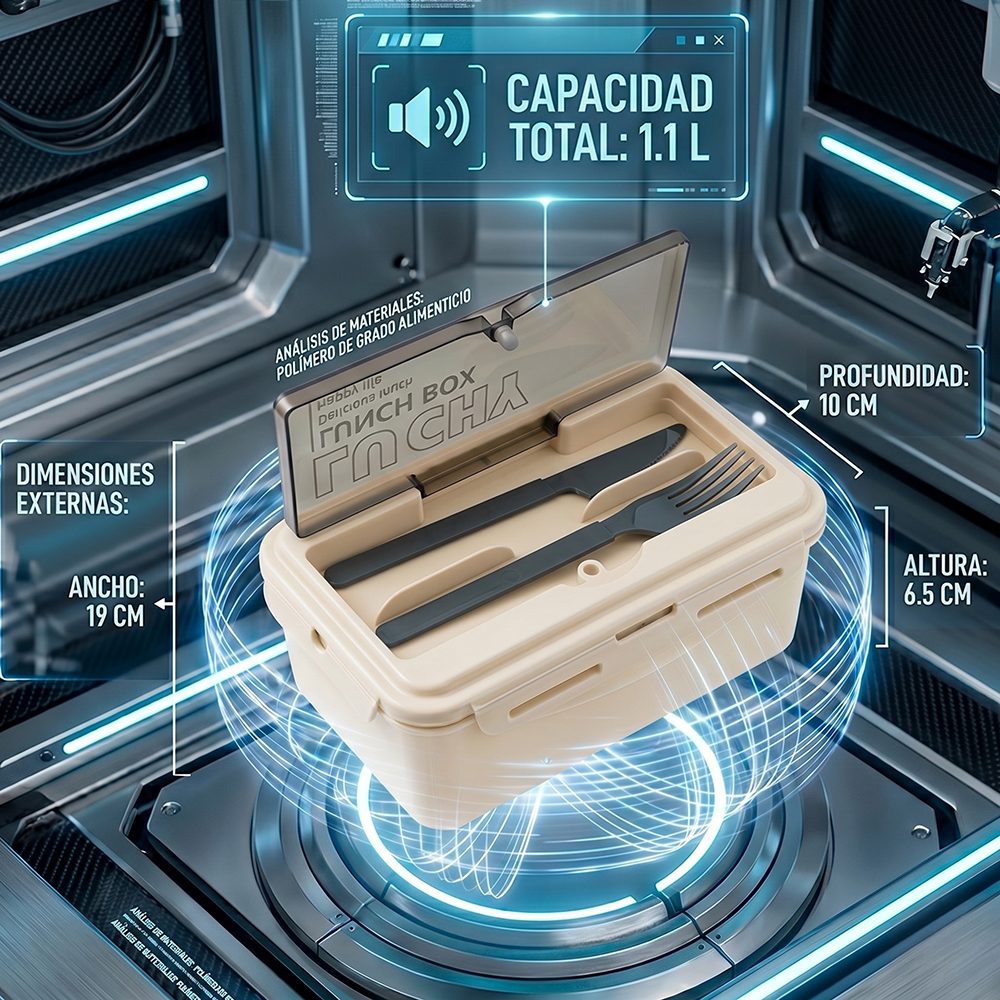 Gracias a su capacidad de 1.1 L, es ideal para transportar porciones más grandes de comida, ensaladas, fruta o guarniciones, adaptándose perfectamente a las necesidades de la escuela, oficina, gimnasio o actividades al aire libre.