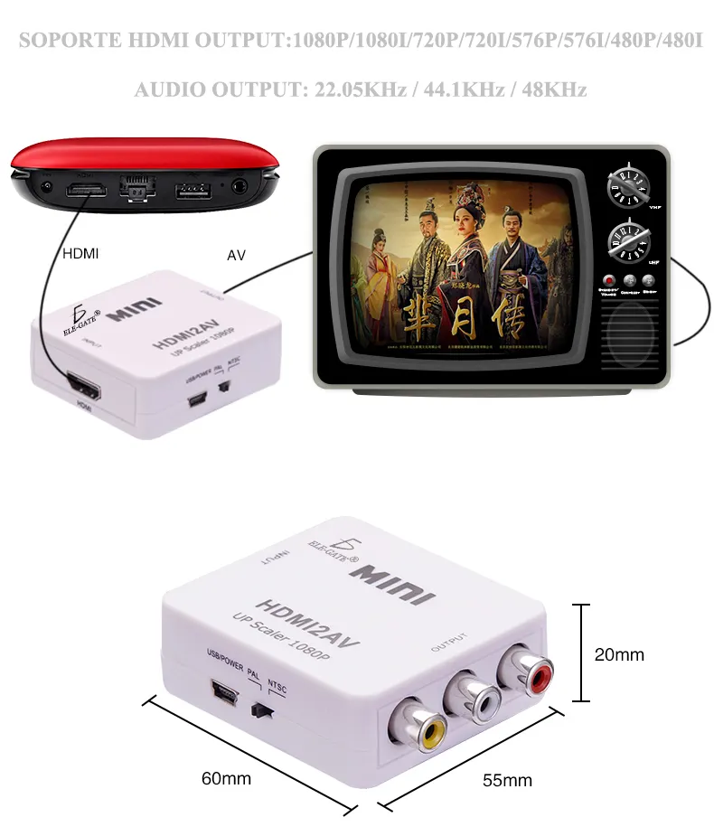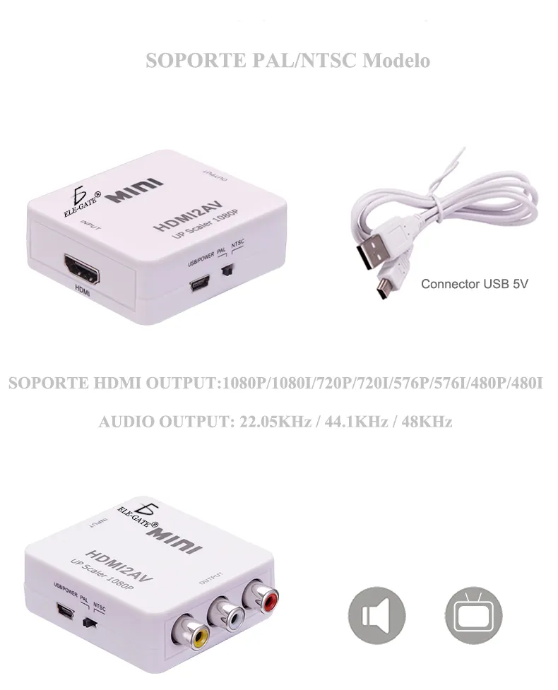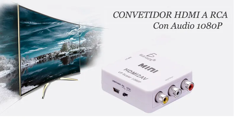 Convertidor Hdmi A Rca Av Audio Video Convertir la Señal de HDMI a Señal Normal RCA, ayudandote a Convertirla con la Calidad de la Señal HDMI, funciona para concetar tu TV/VHS/VCR/DVD para que el convertidor de señal nesesita cambiar el boton lateral a modo NTSL A PAL,