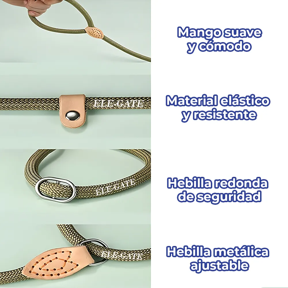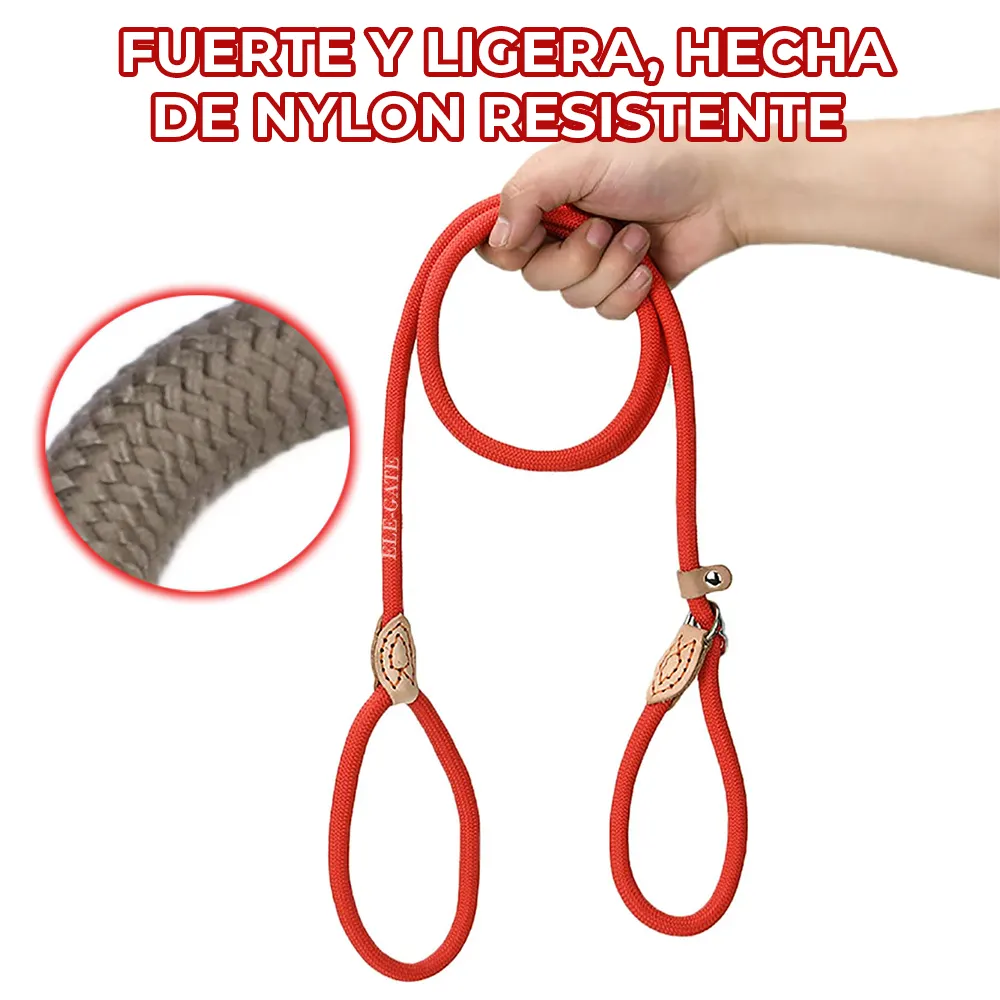 - Nylon de Alta Calidad: Fabricada con nylon resistente y duradero, esta correa garantiza una alta calidad y durabilidad para el entrenamiento de tu mascota.