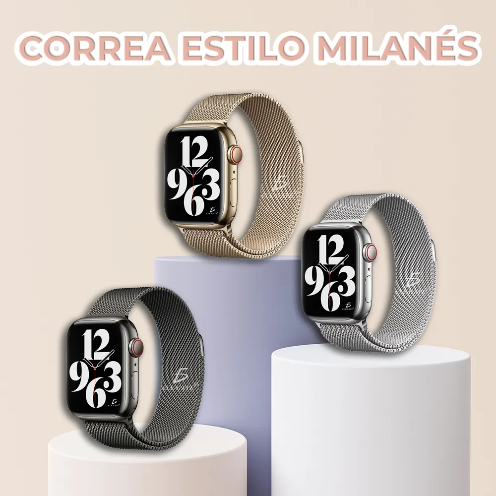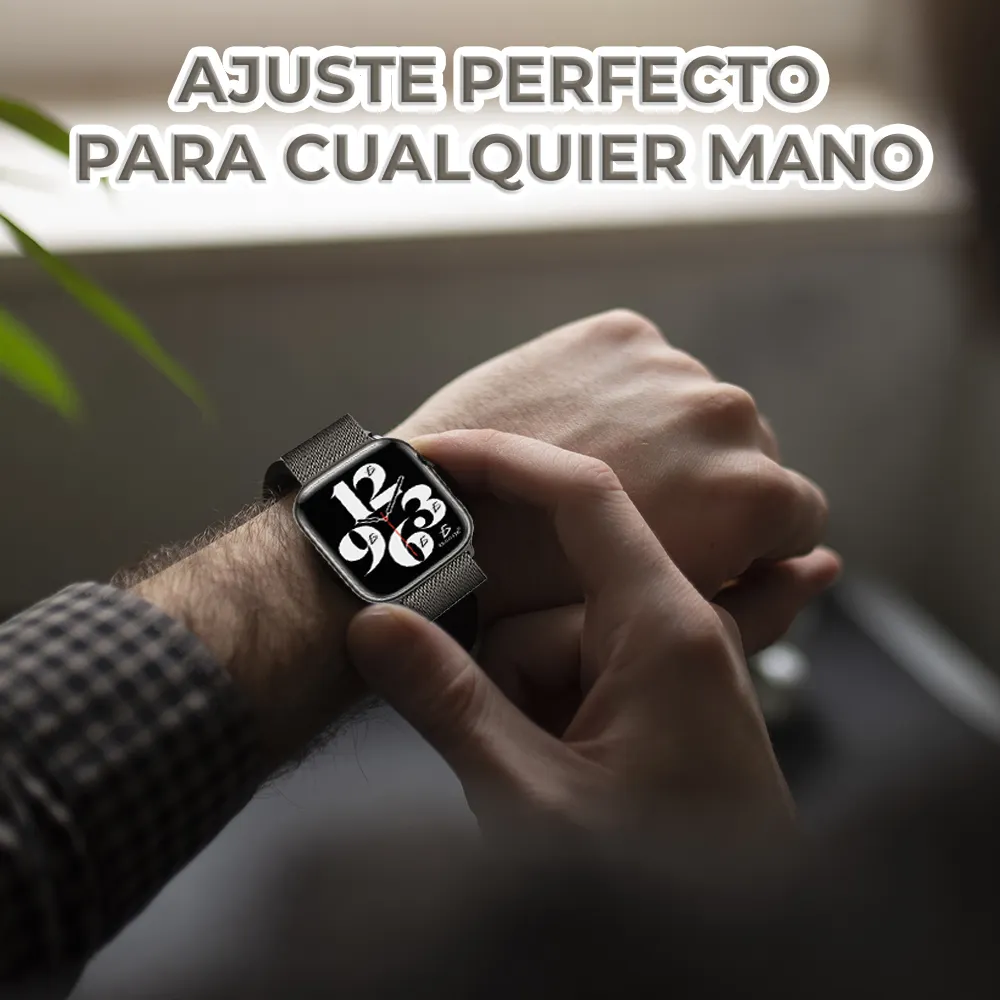 Correa para Smart Watch tipo Apple de 38-41mm de Acero Inoxidable con Cierre Magnético. Confeccionadas a partir de una aleación de acero inoxidable con cierres magnéticos o mariposa hechos a medida. Ideal para hacer tu reloj elegante y sofisticado.