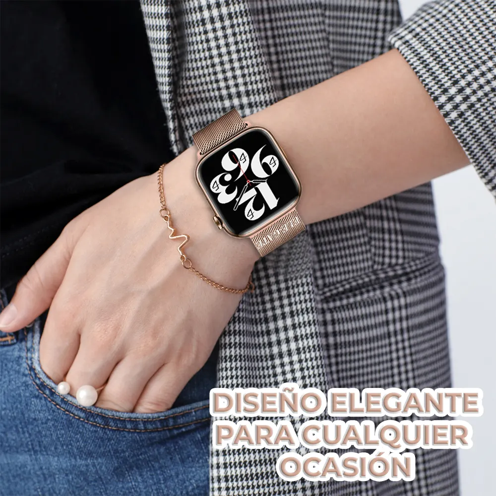 Transforma tu Smart Watch tipo Apple de 38-41mm en una pieza de elegancia atemporal con nuestra exclusiva correa de acero inoxidable. Confeccionada con una aleación de acero inoxidable de primera calidad y disponible con cierres magnéticos o de mariposa hechos a medida, nuestra correa combina a la perfección durabilidad y estilo. Ideal para cualquier ocasión, desde reuniones de negocios hasta eventos formales, esta correa añade un toque de sofisticación a tu Smart Watch. Compatible con una amplia gama de modelos, su diseño universal garantiza un ajuste perfecto y una comodidad excepcional. Además, su instalación fácil y rápida te permite personalizar tu Smart Watch en segundos. Haz una declaración de estilo con nuestra correa de acero inoxidable y lleva tu Smart Watch al siguiente nivel de elegancia y sofisticación.
