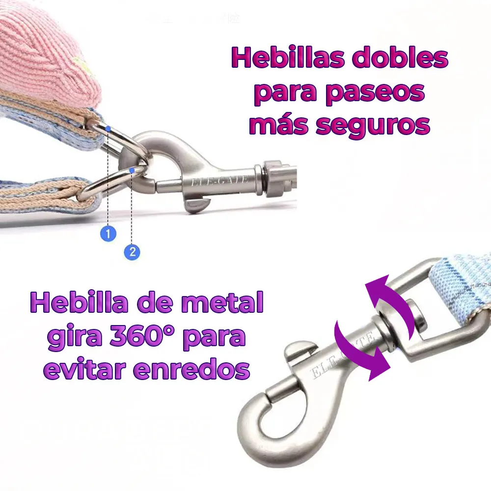 Haz que los paseos con tu mascota sean aún más divertidos y adorables con nuestro juego de correa y arnés con diseño de oso! Este conjunto no solo es funcional, sino que también agrega un toque de ternura a la hora de sacar a pasear a tu perro o gatito.