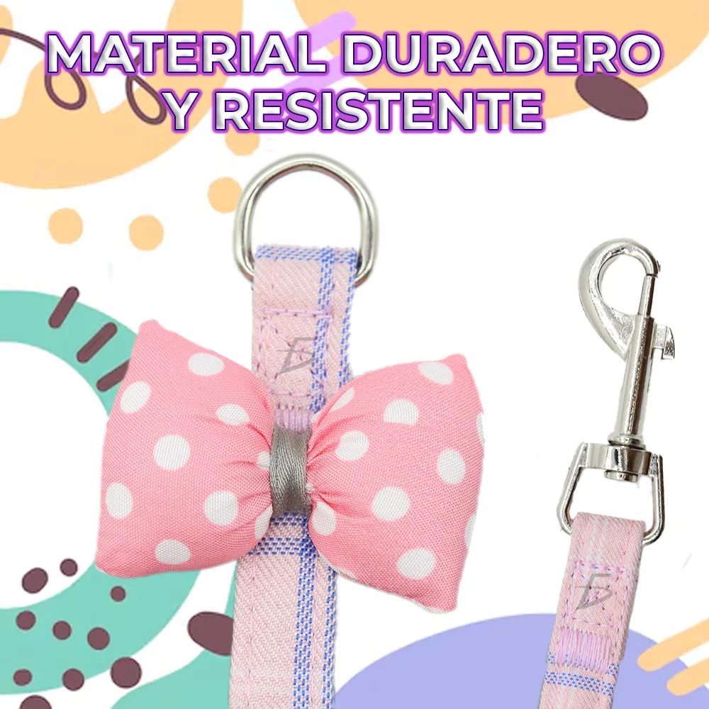 Correa y Arnés con Moñito ideal para que tu mascota pequeña luzca fashion y en tendencia