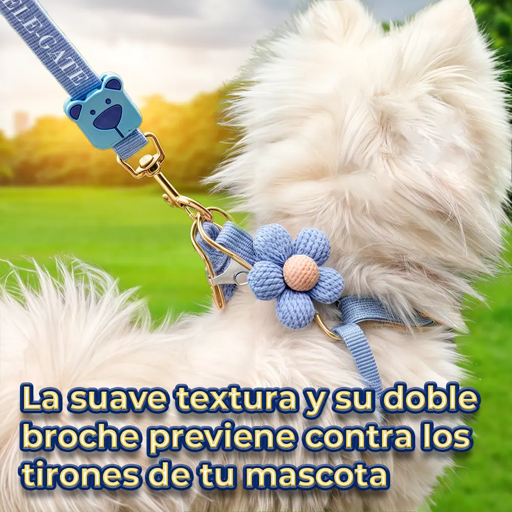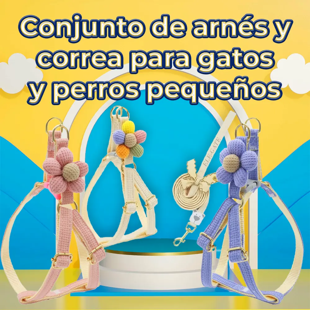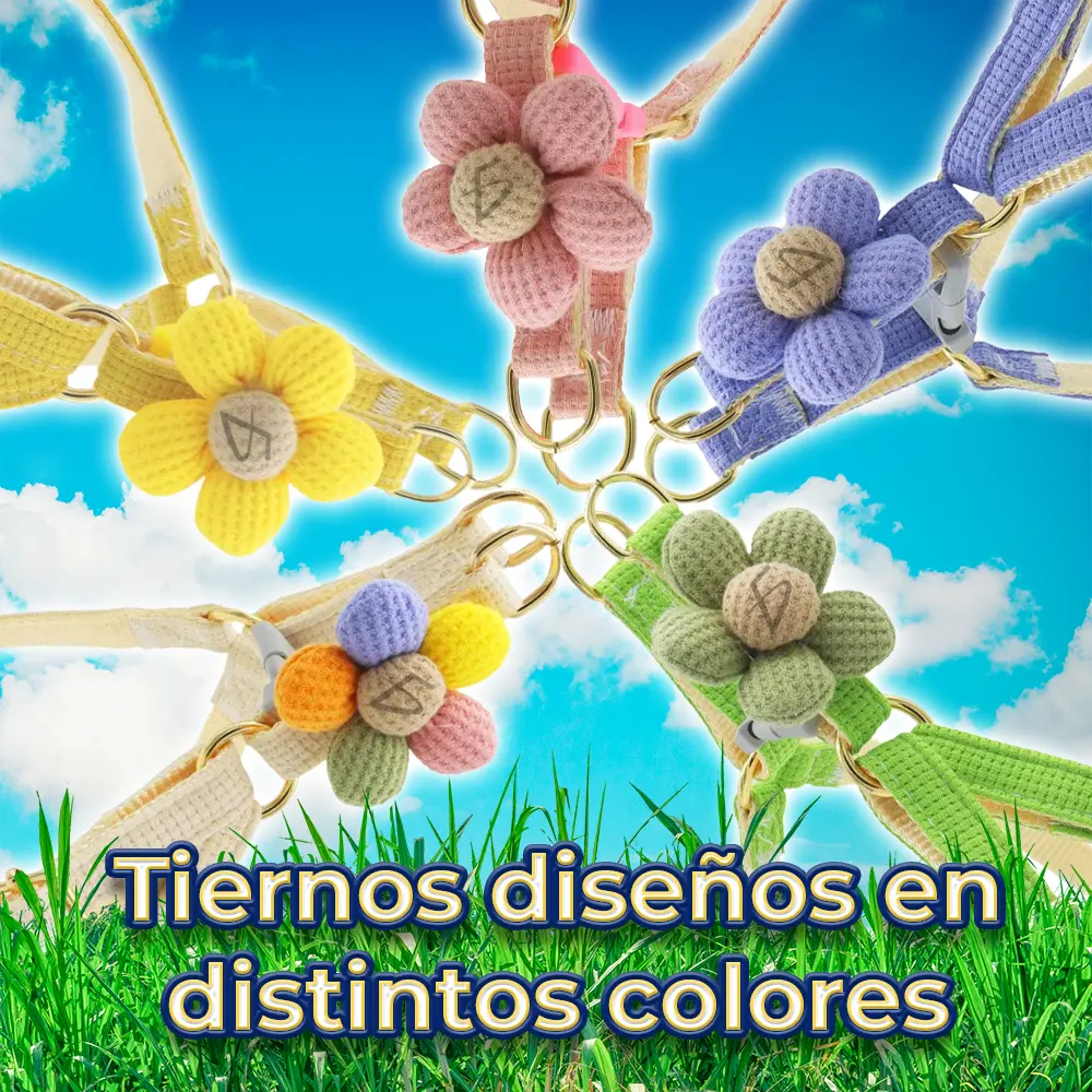 Correa y Arnés para Gatos y Perros Pequeños con detalle de Flor resistente con colores Kawaii
