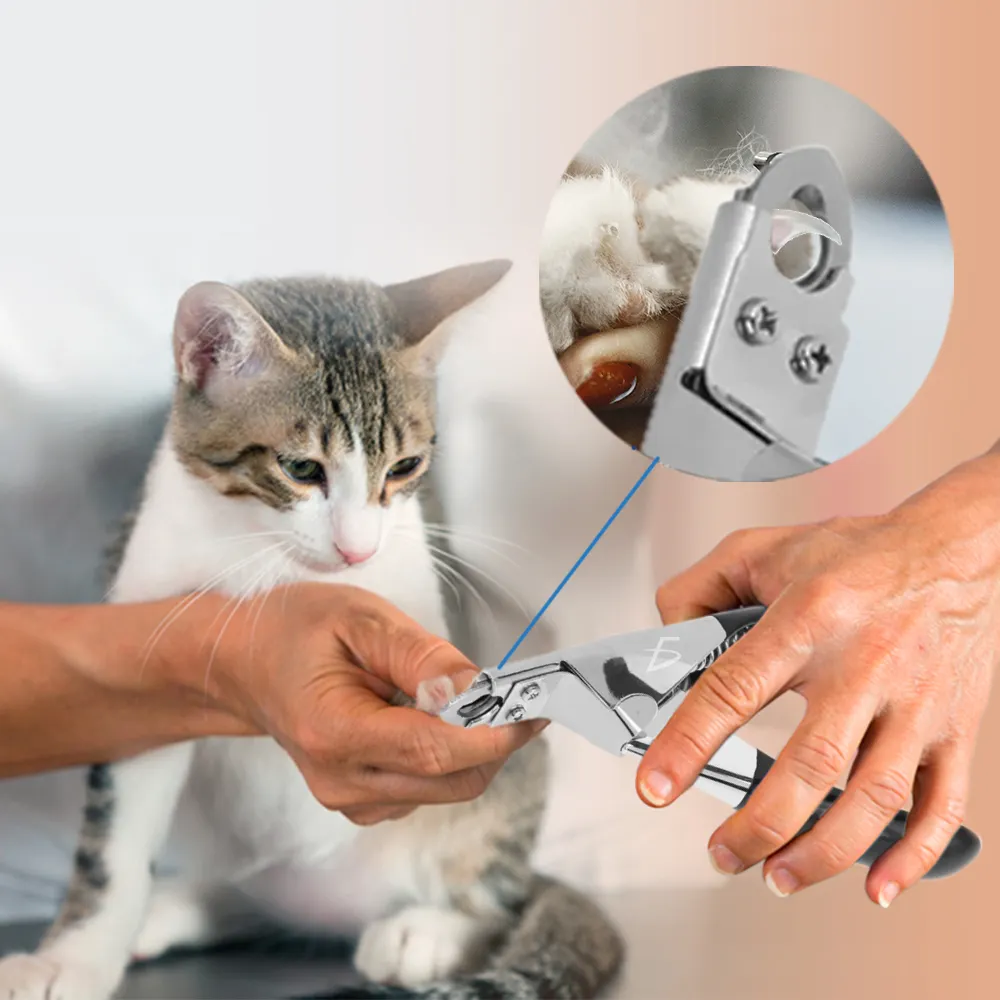 - Diseño de hoja de anillo de seguridad: el diseño de hoja de anillo de seguridad ayuda a controlar el corte y ajustar la longitud del dedo del pie de la mascota más fácilmente. El resorte puede empujar la hoja para un corte preciso. Además, el diseño de hoja de anillo con ángulo de 45° puede evitar de forma segura el corte demasiado cerca de la línea de sangre de una uña de mascota.