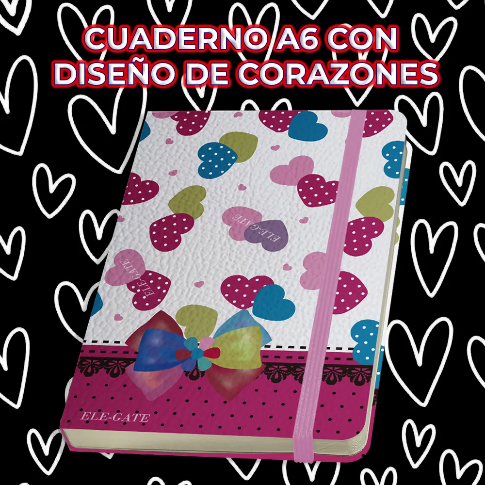 - Cuaderno compacto con diseño de corazones estilo coquete.
