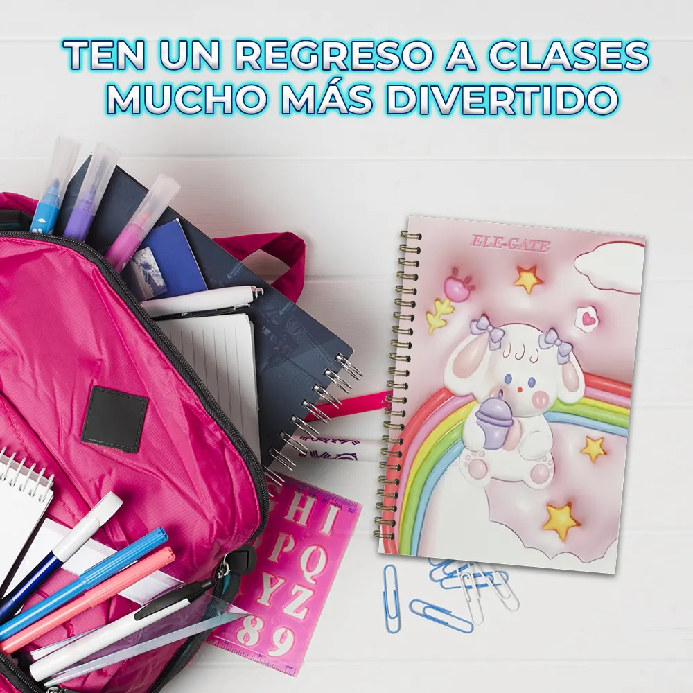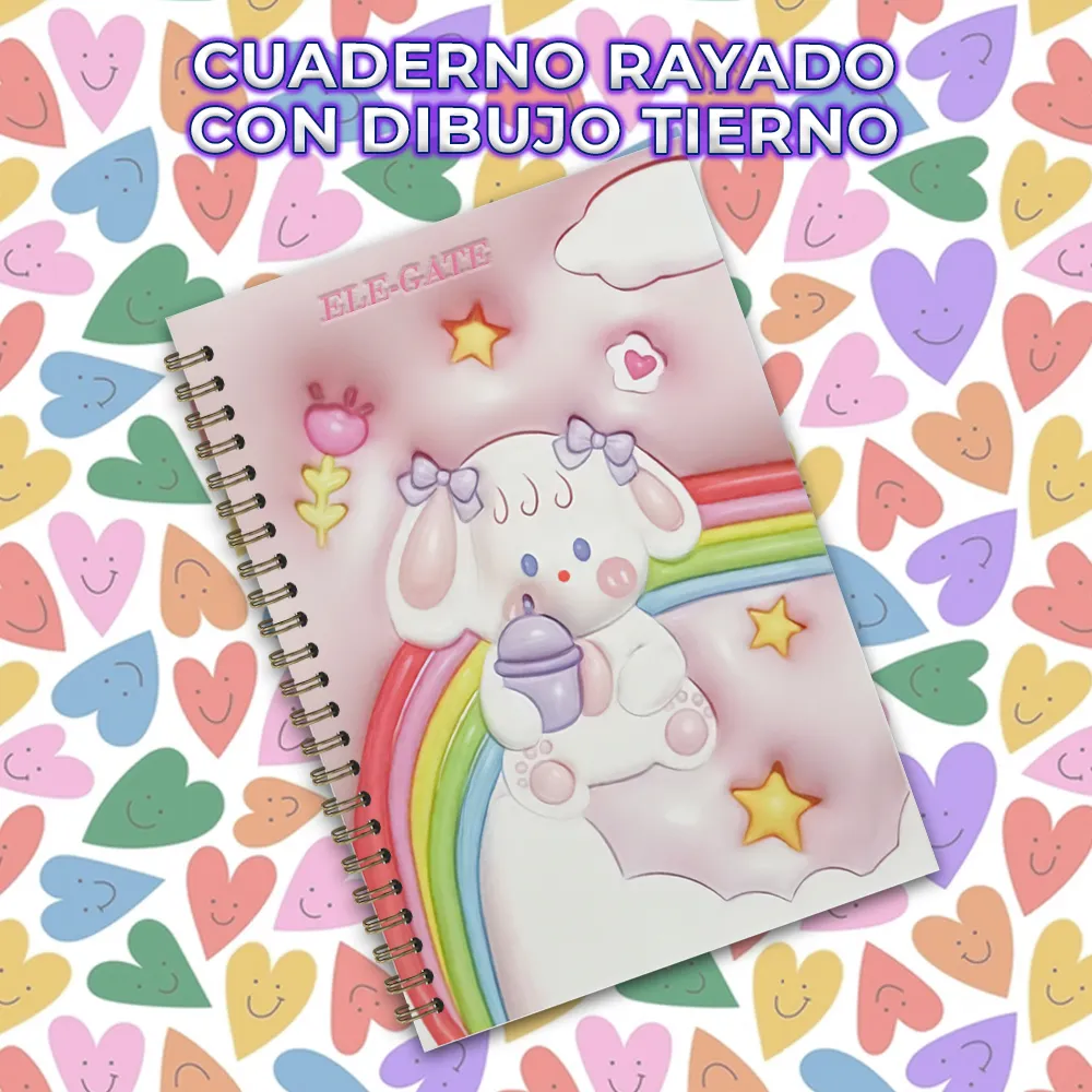 Cuaderno de 80 Hojas Rayado con Espiral Tamaño A4 ideal para el regreso a clases. Con una portada tierna y muy kawaii llena de ternura y a la moda tu regreso a clases o para escribir o dibujar en tus tiempos libres.
