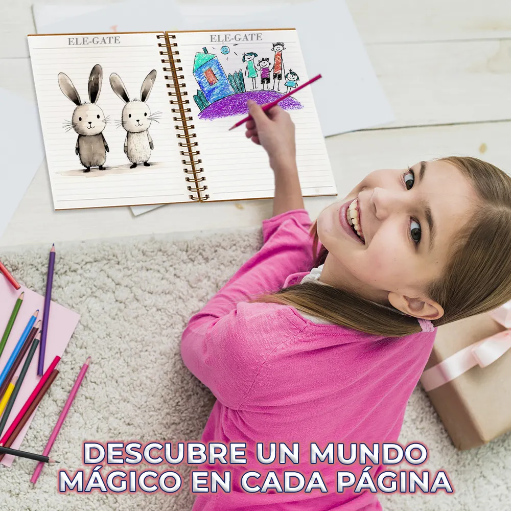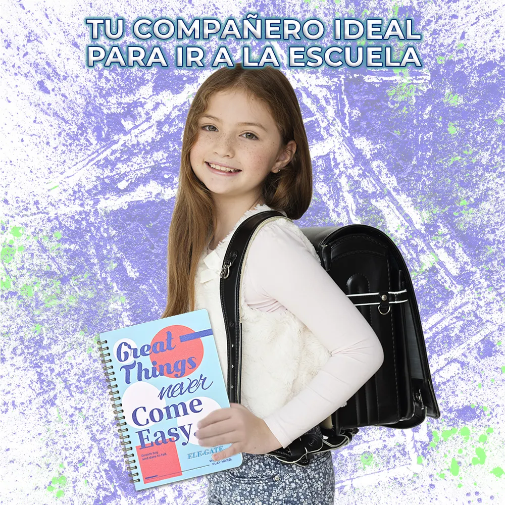Cuaderno Rayado con Espiral: Cuenta con 80 hojas rayadas que ofrecen una superficie ideal para tomar apuntes, escribir ideas o realizar dibujos con comodidad y claridad. El diseño de espiral permite que el cuaderno se abra completamente y se mantenga plano para una escritura más fácil y cómoda.
