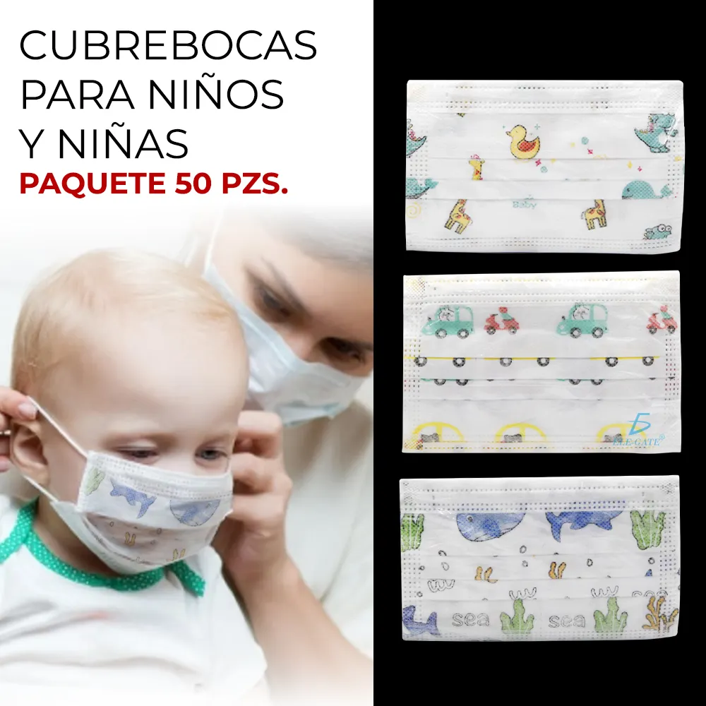 Cubrebocas 50pz Desechable 3 Capas Para Nino 0.5PESOS/PZ