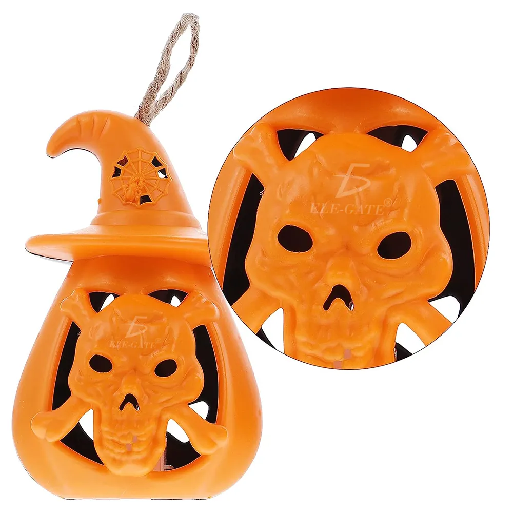 Decora tu hogar este Halloween con nuestras calabacitas de plástico naranja con sombrero de bruja y luz LED. Ideales para crear un ambiente espeluznante y divertido en fiestas, jardines, ventanas o como centro de mesa. Fabricadas en material resistente, con diseño detallado y luces LED que iluminan en la oscuridad para dar un toque mágico y tenebroso a tu decoración. Perfectas para interiores y exteriores, reutilizables año tras año.
