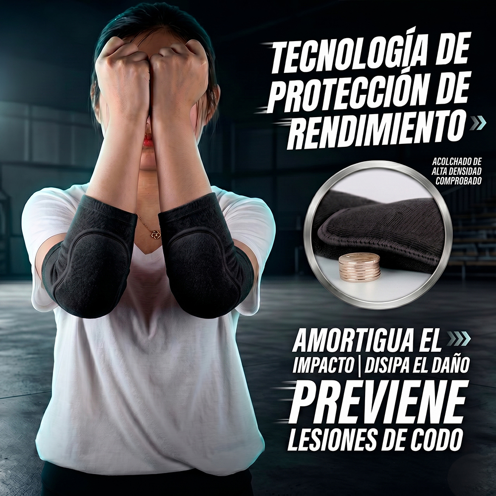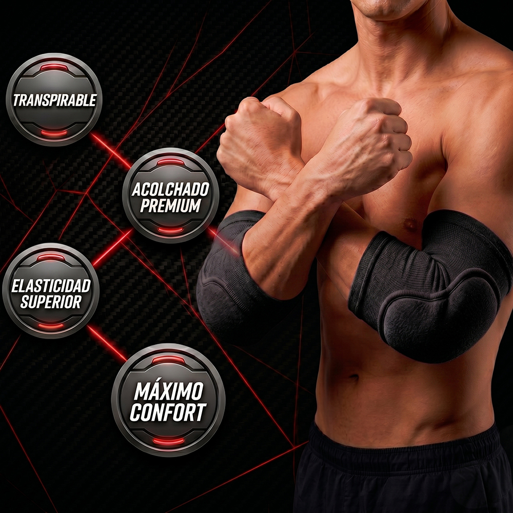 Fabricadas con tela elástica transpirable de alta calidad, estas coderas permiten una excelente ventilación y absorción de humedad, manteniendo tus codos frescos y secos incluso durante sesiones prolongadas. Su diseño ergonómico se adapta perfectamente a la forma natural del codo, proporcionando un ajuste firme sin incomodidad.