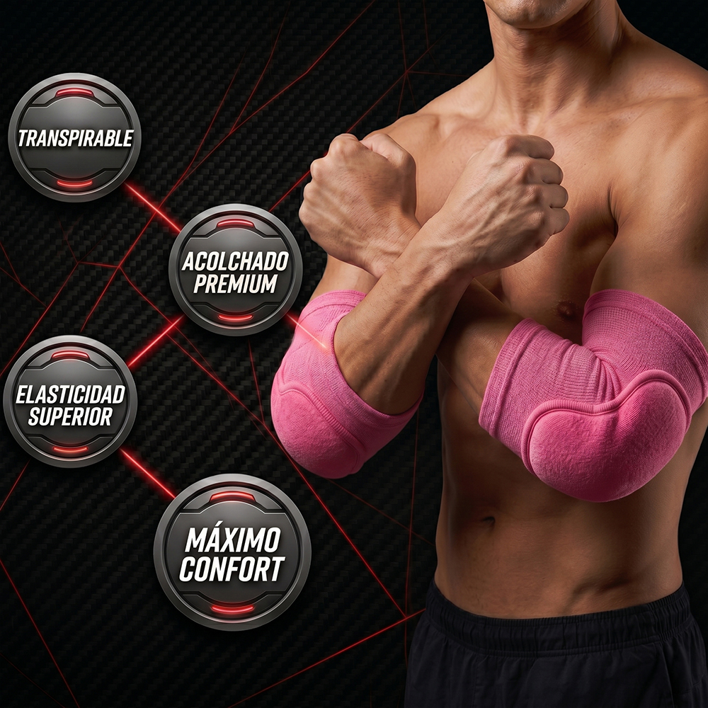 Fabricadas con tela elástica transpirable de alta calidad, estas coderas permiten una excelente ventilación y absorción de humedad, manteniendo tus codos frescos y secos incluso durante sesiones prolongadas. Su diseño ergonómico se adapta perfectamente a la forma natural del codo, proporcionando un ajuste firme sin incomodidad.