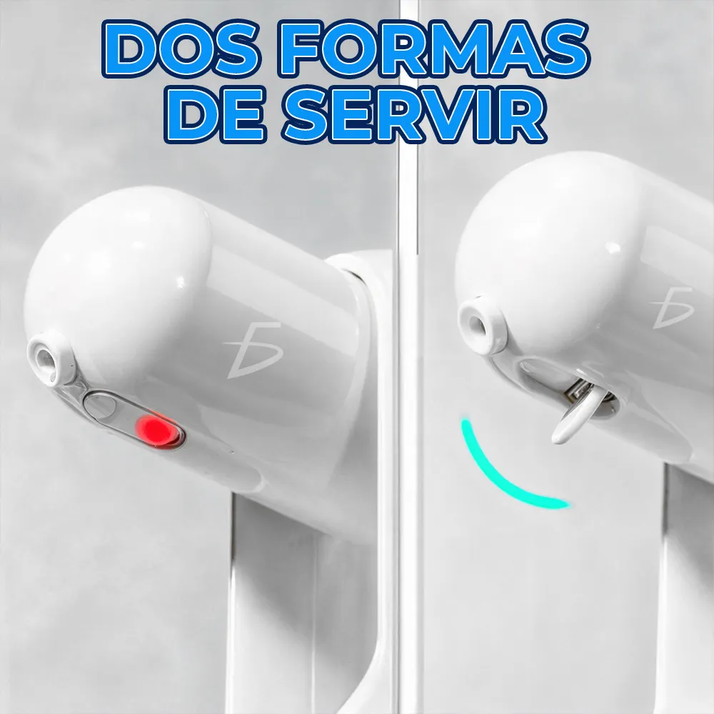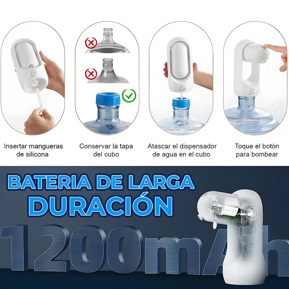 Despachador de Agua Potente con Dos formas de Servir Agua. Funciona con boton touch y con palanca para una medida mas exacta de agua. Con diseño plegable para evitar contaminación de la toma de agua y evitar derrames.