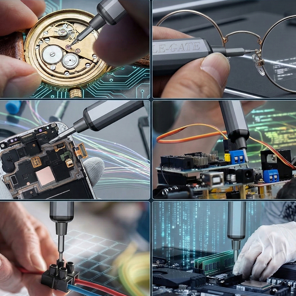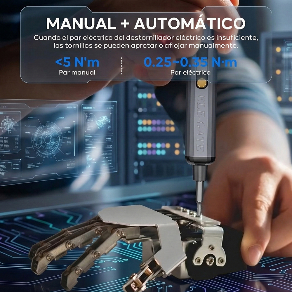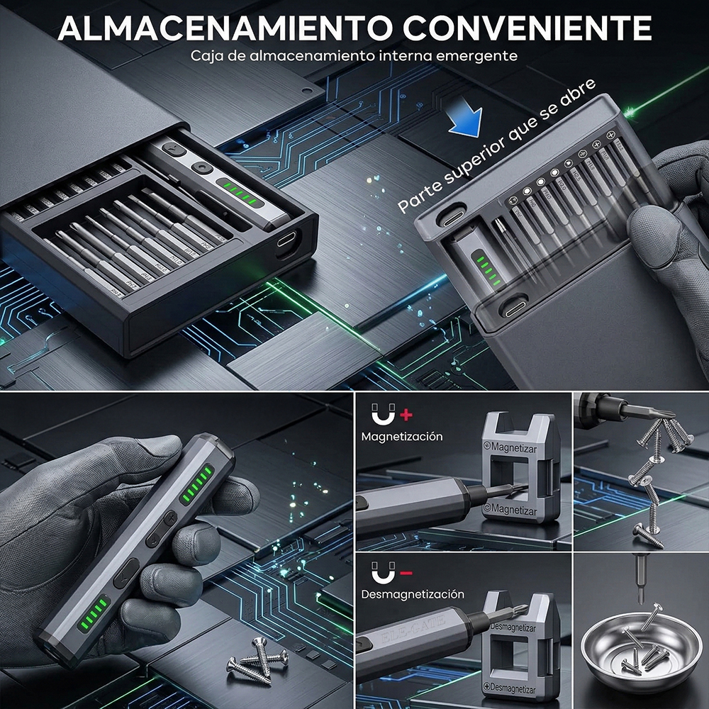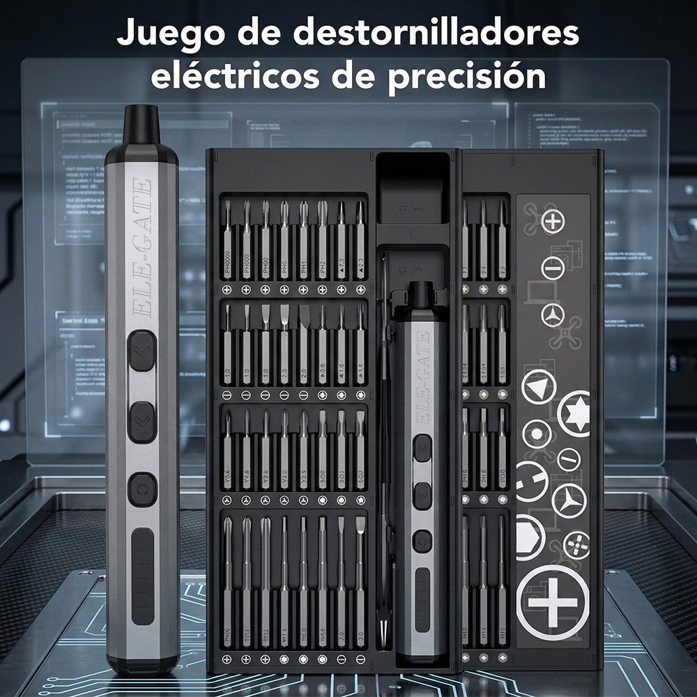 La herramienta ideal para reparaciones electrónicas y trabajos de precisión. Este destornillador eléctrico inalámbrico está diseñado para facilitar la reparación de celulares, computadoras, cámaras, relojes y otros dispositivos electrónicos. Su diseño tipo bolígrafo lo hace cómodo, ligero y fácil de usar incluso durante largos periodos.