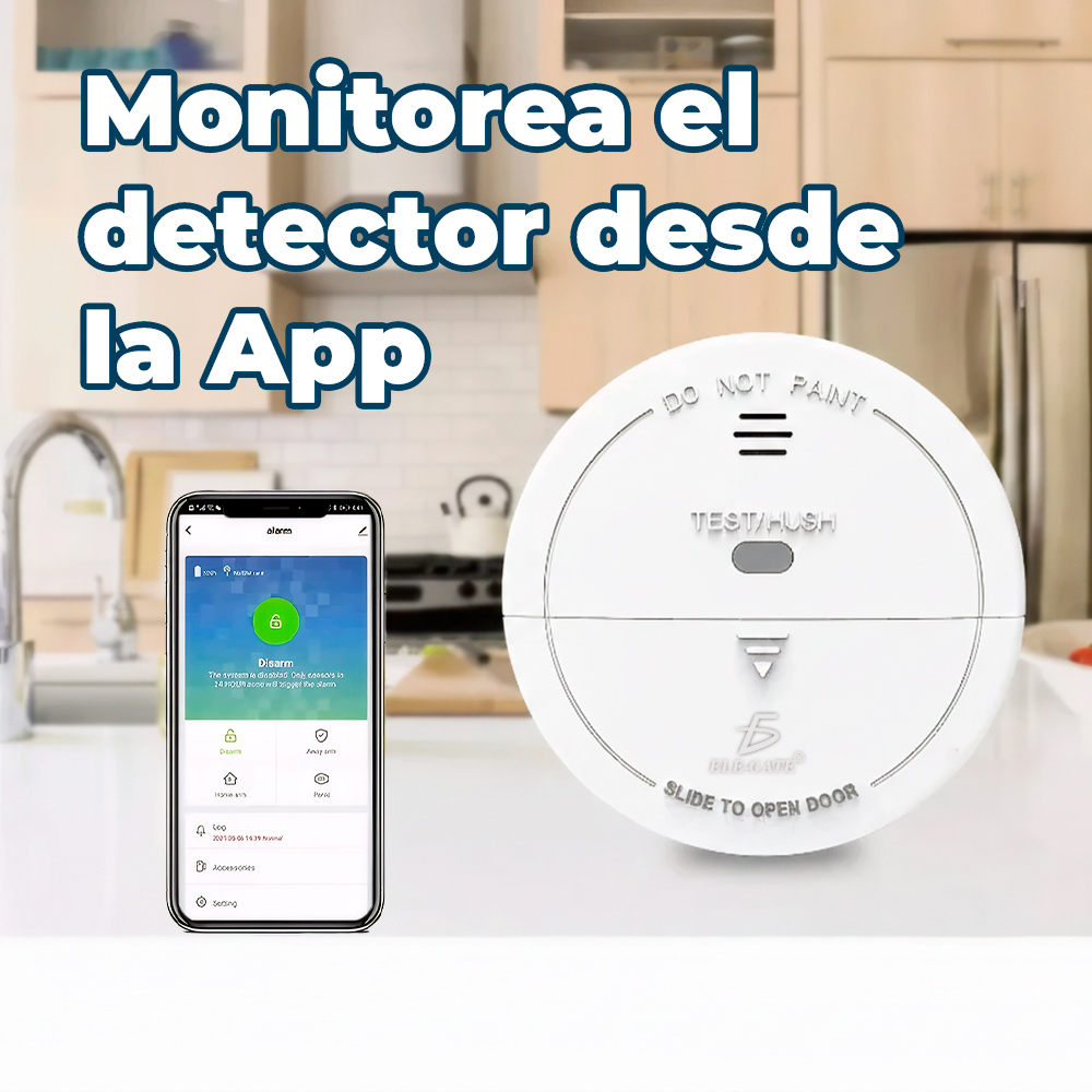 - Notificación remota: Recibe alertas en tu celular si hay humo, sin importar dónde estés