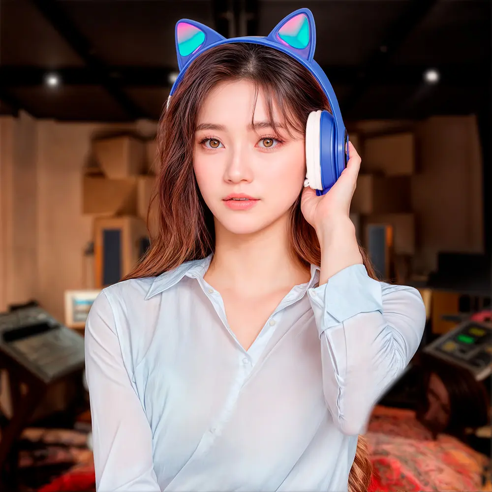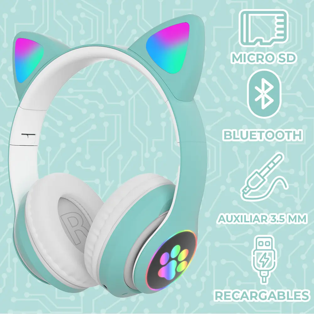 Diadema Gato Bluetooth Auriculares Colorido Led Luminoso