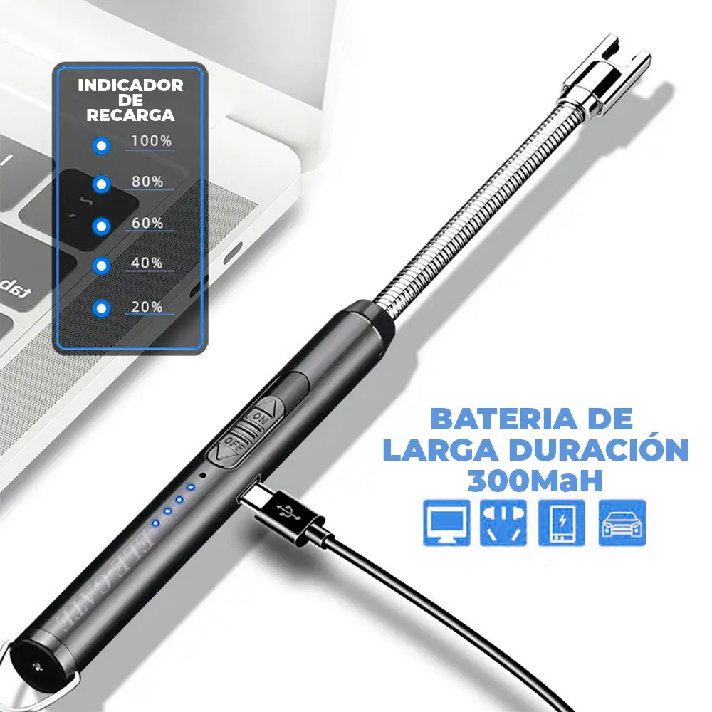 Encendedor Eléctrico, USB Recargable con Pantalla de Batería LED, Cuello Flexible de 360 ° Con Botón de Seguridad.