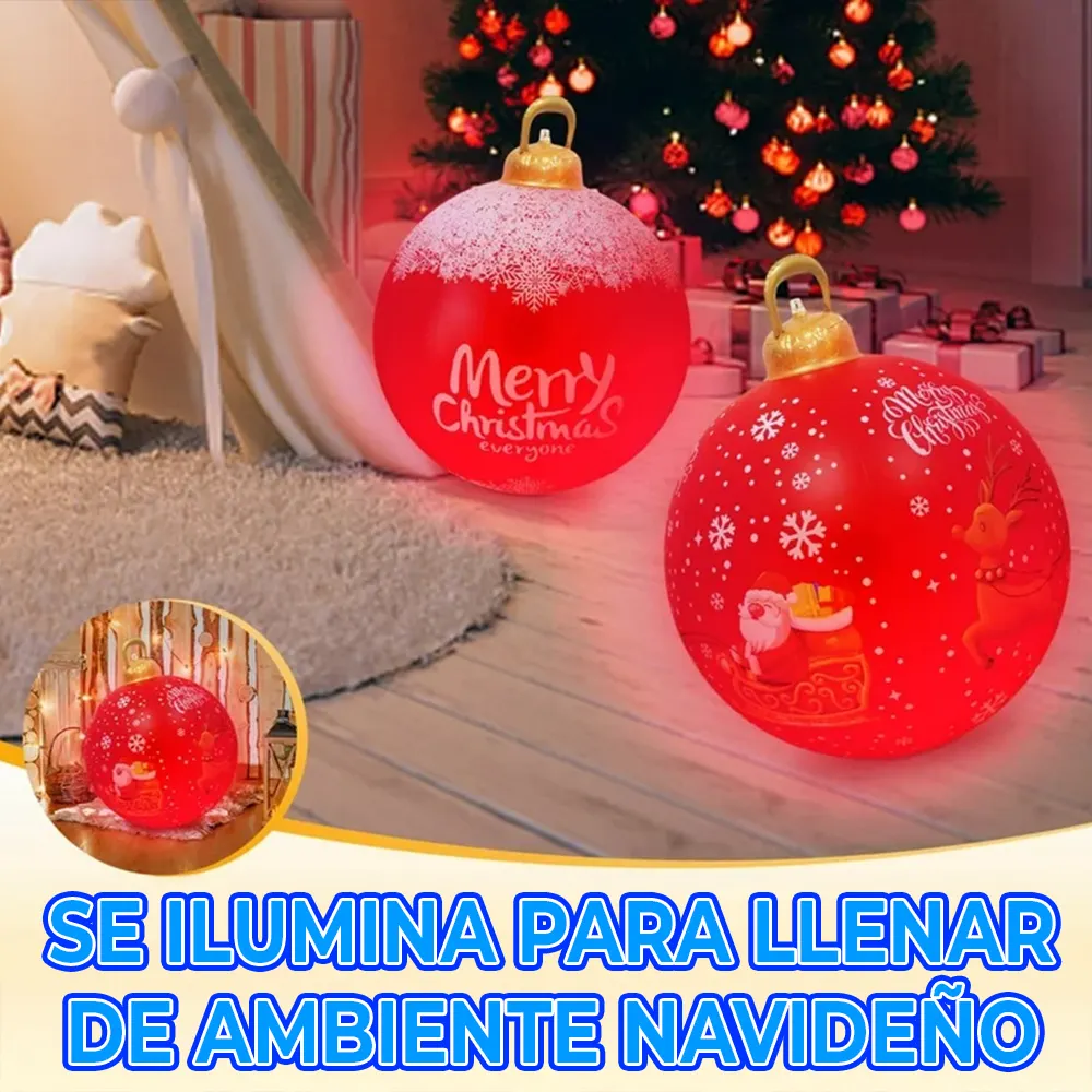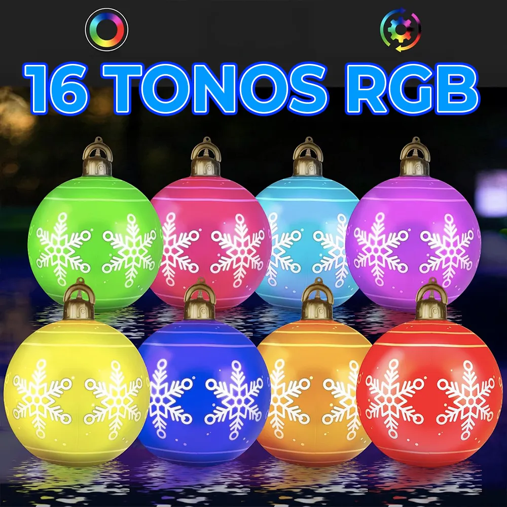 Esfera de Navidad Inflable con Luz Led RGB y control Remoto. Ideal para exteriores con control remoto, gracias a sus 4 potentes leds ilumina cualquier espacio. Llena de espíritu navideño con sus colores RGB.