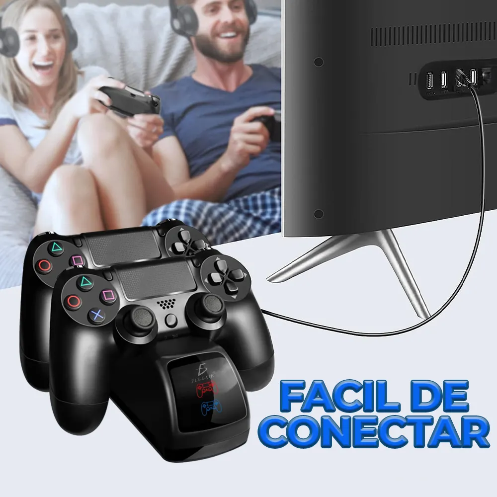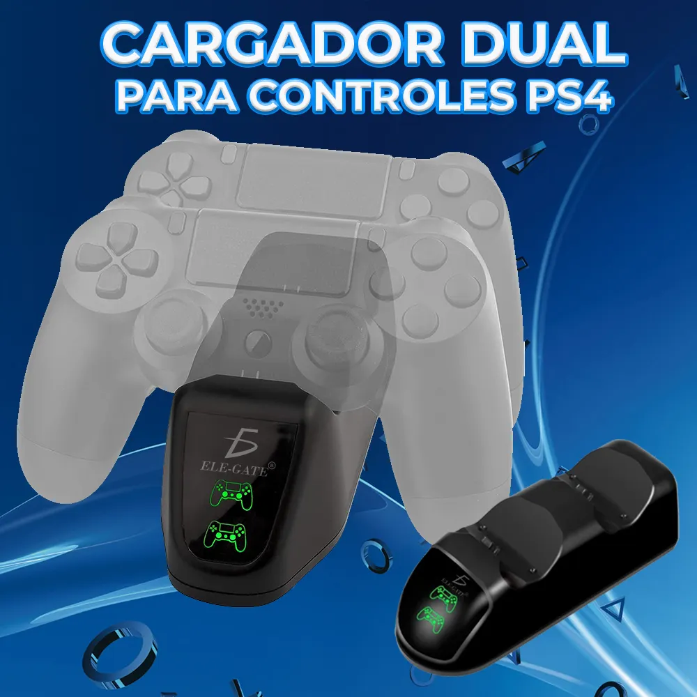 - Carga Dual: Carga dos controladores DualShock de Playstation simultáneamente, manteniéndolos siempre listos para la acción.