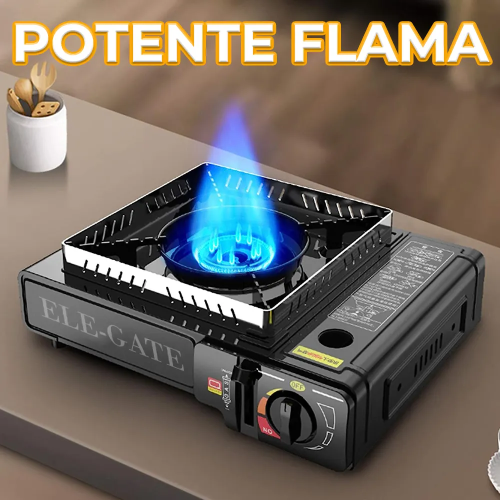 - Funciona con cartuchos de gas butano para una fuente de calor confiable y eficiente